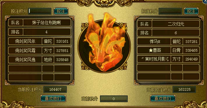 3v3-89级别段:倚剑卧薪尝胆终夺冠 89段的决赛双方均是赫赫有名的夺冠热门队伍——倚剑队和悍马队。作为两只十分出色的队伍,赛前均进行了充分的准备,在决赛相遇,上演了一出决战大戏,让战歌的玩家大饱眼福。 从队伍的配置上而言,倚剑队夺冠的希望略大于悍马队,毕竟悍马队这边输出要略逊一筹。第一场共计近三十回合,转机应该从第18回合开始,暗器大战之后,悍马队援助不给力,给了倚剑队可乘之机,最终倚剑队把握机会,赢得了第一局。第二场,有了第一次胜利的信心,倚剑队开局便强势进攻,致使悍马队失去了两名有力队友。最后,倚剑队以2:0力克悍马队,赢得了比赛。