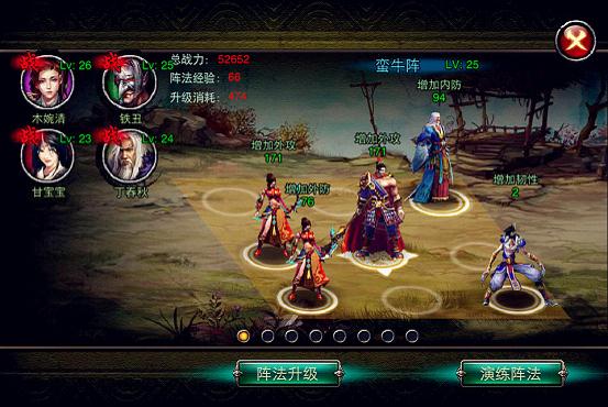 伙伴招募 人在江湖漂,哪有不挨刀?一个篱笆三个桩,一个好汉三个帮!不招募伙伴怎么排阵型!不排阵型怎么揍别人? 能够收纳乔峰,慕容复,扫地僧等等与自己麾下,跟这些牛b闪闪的人物一起成长升级。不招募伙伴你难道想1v5么!绝世武功你会么?当然,伙伴们会!一般的伙伴我也不介绍了。可是大咖级的有木有。传说中的有木有!都是橙色武将,王语嫣,虚竹,段誉这种二代目就算什么,既然要搞就要搞一代目啊! 比如扫地僧,内功深不可测龙象波若功,飞沙走石,势不可挡,劲可穿墙。全屏AOE,技能超级华丽啊!或者萧远山这种,当初就是1v21,到了少林寺苦心修炼,“大力金刚掌”,苦练二十余年,金刚掌力怒扫全场。这些都是堪比boss的队友啊!有了神一样的队友,麻麻再也不担心我输出了!当然- -小编我截止发稿时,也还没招募到橙色武将……我也只是那么一听说! 阵型系统 好马配好鞍,结合不同九宫格阵型,合理配置大侠站位,才能激发最大潜能,以一敌百,出奇制胜。 阵型通过“演练陈法”而来或通关副本得到,布阵得法就能充分发挥自己的战斗力,克敌制胜,不同的阵法各有千秋,或重攻击,或重防御,或重命中。伙伴的不同站位能变幻出各种搭配,不同的阵法不同的搭配,决定了跑动出招顺序,能不能夺得制敌先机在此一举。排序时一定要注意自己伙伴的属性,然后就可以按照自己的喜好来做。 QTE战斗系统 《i江湖》对战斗系统进行了颠覆性创新,加入了QTE系统(什么是QTE:一个特定或随机的符号,在一段长度中迅速来回移动,玩家需要在符号移动到该长度的有效区域中时按下对应按钮)战斗中各位大侠魔头们会根据玩家策略安排进行自动的战斗,但是在关键时刻,当角色的怒气值爆发后,将会出现QTE技能,这是必须亲自玩家操作的。 通过小编的试玩,QTE的出现将会对游戏的策略性产生很大的变大,玩家不光需要动动你的脑子还需要加强你的手指配合。对我们这些天天坐的女子来说,生命在这里不停的运动。 手指按序划动以后,角色会施放怒气技,效果华丽,附带十分高的伤害。比单纯的回合制游戏,选择技能,枯燥无味的等角色施放,这个系统对手指的操作更加高哟!所以玩家们不要想偷懒哦,QTE的释放可能是你一场战斗胜负的关键哦!