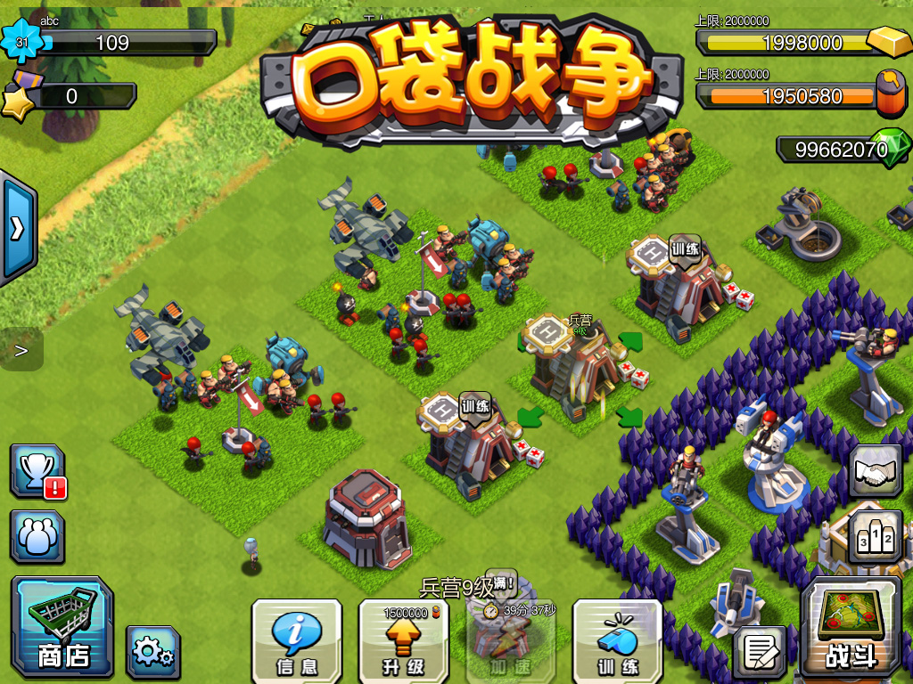 由空中网打造的2013最休闲的塔防游戏——《口袋战争》闪亮登场了!在91助手中搜索“口袋战争”,即可下载!塔防+经营+战略的经典玩法,搭配战斗加速、攻击录像回放等特色系统,一定让你大呼过瘾!现在就一起来加好友、建联盟、撸资源吧!更多惊喜等你体验哦! 口袋战争官网地址:kdzz.kongzhong.com 口袋战争iOS越狱版下载地址:http://d.handmo.cn/mp/ios/M1.ipa 口袋战争Android版下载地址:http://d.handmo.cn/mp/apk/M1.apk 口袋战争appstore下载地址: http://t.cn/zH3QT80 【农场游戏——休闲感十足!】 你可以把《口袋战争》当做一个休闲的农场游戏来玩,收取资源建设基地。当然如果你更喜欢PVP,更绝对不会失望。通过训练强大的部队,或是布设坚不可摧的防守,你可以与成千上万的用户一较高下,享受战斗的快乐和成就感! 【联盟排行——无兄弟不战争!】 这里的战场,从不是一个人在战斗,所有盟友将会与你并肩作战。游戏中你可以与其他玩家一同建立联盟,彼此交流并相互支援!另外,你也可以查看排行榜,查看玩家或联盟的排名情况! 【“双打”模式——PVP+PVE完美结合!】 多人模式为玩家间PVP模式,可以掠夺其他玩家的资源,获胜后有勋章奖励!而勋章就代表着你一路以来战纪的标杆,也是影响排名的主要因素哦。在不不够强大之前,也可以去挑战世界中的PVE关卡,获得你建设基地和造兵所需要的资源! 【贴心体验——战斗记录回放!】 虽说胜败乃兵家常事,但是眼看着自己的资源被对手撸走,基地被无情拆毁,当然别有一番“恨”意在心头。不过只要有了战斗记录界面,就再也不愁了!进攻与防守的情况随时掌握,同时可以播放最近几场战斗的录像回放!了解到自己的布防弱势,才能吸收到更多的战斗经验,下次定能迎来凯旋之战! 更多资讯可关注口袋战争最新动态! 了解《口袋战争》最新消息,请关注: 口袋战争官方网站:kdzz.kongzhong.com 口袋战争新浪微博:http://e.weibo.com/tinywar 口袋战争论坛: http://t.cn/zH630Mb 游戏中遇到任何问题,欢迎联系客服: 口袋战争客服邮箱:kdzz_kefu@kongzhong.com (更多游戏资讯请访问叶子猪游戏资讯中心:http://news.yzz.cn/) [编辑:包子]