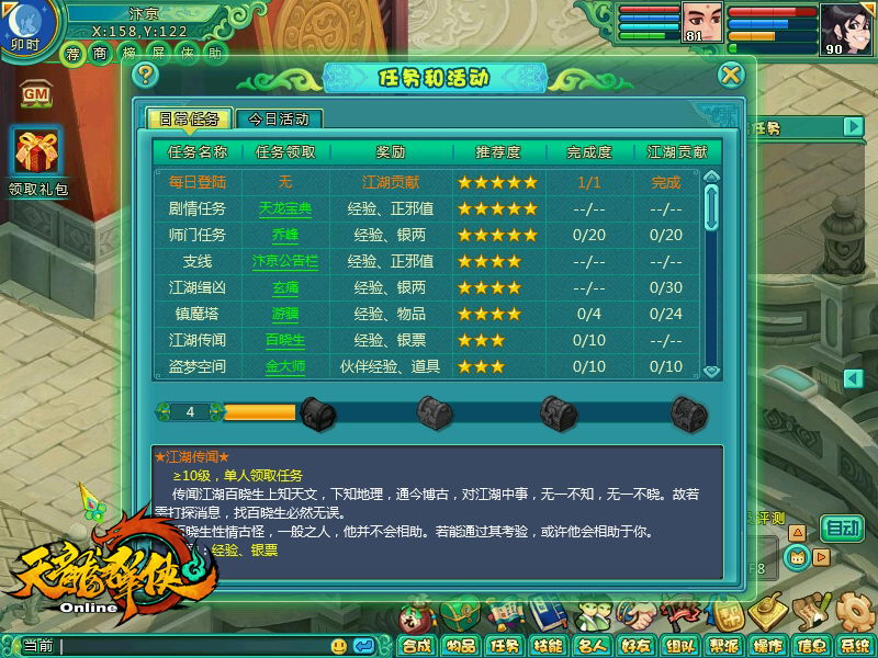 大礼五:伙伴争雄——排名大奖 8月2日16时开服,到8月16日,伙伴排名进入前50的英雄好汉,都能获得大量的奖励。前五名能得到988元宝,最后一名也能获得188元宝,伙伴也能挣钱。 大礼六:普天同庆——捡礼包 16时开服后,每日11:00——23:00,游戏世界地图中都会刷出无数的宝箱,玩家只要伸手点开宝箱,就能获得宝箱中的大礼,见者有份,多拿多得,请不要怀疑,这就是传说中的天降横财。 大礼七:侠义归心——江湖之路大奖 从30级开始,只要完成大侠之路相应的任务,玩家就能获得丰厚的奖励,在等级段内完成,还能获得超值的额外奖励。 大礼八:见证奇迹——成长大礼包 从30级开始,玩家每升10级都能获得大礼包一份,内含丰富的通宝、商城道具,总共价值上千元,统统免费送。 大礼九:风动江湖——江湖贡献大礼 在《天龙群侠OL》中,玩家的一举一动都影响着江湖,玩家对江湖的贡献越大,所得到的奖励也会越多,江湖贡献共分为四等,最高一等江湖贡献,奖励之好,简直让人垂涎欲滴。 每天完成江湖任务,也可领取各个阶段的宝箱 《天龙群侠OL》今日16时首次不删档封测,九大好礼等着你,轻松赢大礼!天龙江湖,等你来战! 首测庆典,热浪六重奏活动地址:http://www.tlqxol.com/xinwen2/bcz.html 注册地址:http://www.tlqxol.com/account/index.php/account/create 下载地址:http://www.tlqxol.com/content.php?t1=1&t2=downloadgame 游戏论坛地址:http://www.tlqxol.com/bbs/forum.php (更多游戏资讯请访问叶子猪游戏资讯中心:http://news.yzz.cn/) [编辑:断章]