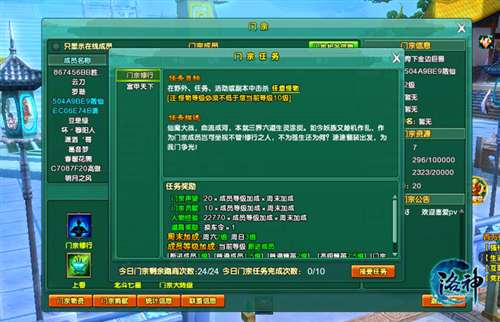 2013年双视角仙侠网游《洛神》将于12月20日开启新服以及新版本“密室生存”。在本次的新版本中,为了让玩家体验更多彩的游戏内容,特别改版了新的门宗系统,其中更新增了一系列有趣的门宗活动以及给力的门宗技能。这里赶紧先一睹为快吧! 《洛神》官方网站:http://www.iluoshen.com/ 门宗祭拜——轻松获取门宗货币 说到祭拜,大家肯定会想到清明,想到一系列古老的传统仪式,而在洛神之中,门宗祭拜是一项能让玩家有所收益的活动。玩家可以通过祭拜获得一定的门宗货币,从而用于购买各种门宗物资如:技能书,坐骑,仙宠等。 幸运大转盘——每日一转快乐拿奖 玩家可以通过门宗界面的门宗大转盘选项打开本活动,每天每人可以参加一次,每次需要消耗10点门宗货币进行抽奖,有机会获得:门宗贡献、门宗货币、坐骑、活力丹、经验卷轴、圣灵丹、门宗资金等奖励。玩家在休闲之余绝对不能错过咯!