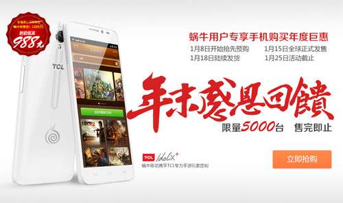 随后蜗牛移动相关负责人,在发布会上整体介绍了蜗牛移动战略以及即将推出的各类创新产品,包括首款Snail特色定制机idol X+、移动游戏平台 “蜗牛商店”以及与联通合作即将推出的专属游戏流量包“蜗牛沃包”等多款重量级产品等。 前不久,蜗牛携手TCL推出了首款“Snail特色定制机”idol X+。据介绍此款手机搭载MT6592联发科真八核处理器,其一流的硬件支持,将会给用户带来最顶级的快速游戏体验。另据蜗牛移动相关负责人现场介绍,包括idol X+手机以及未来蜗牛陆续将会推出的snail系列手机,都将在性能、配置、价格方面都将给大家带来前所未有的惊喜。 性能方面,蜗牛的手机将代表行业最先进的硬件技术;配置方面,蜗牛的手机将向所有游戏玩家提供最顶级视听盛宴的享受 ;价格方面,snail手机向所有游戏玩家实施最高标准的硬件补贴策略。据悉,首款“Snail特色定制机”idol X+,将对蜗牛游戏的玩家施行最高标准的补贴政策,在蜗牛优惠价1888元的基础上,游戏玩家还将获得最高返利价988元。 蜗牛商店是由蜗牛研发的手机APP游戏平台,面对所有智能手机手游用户群体,蜗牛商店将给玩家提供一键拨打客服热线电话服务和内置游戏BBS随时讨论与服务,同时将提供海量自研、联运、海外代理等精品游戏的下载。 蜗牛沃包则是蜗牛与中国联通合作,即将推出的专为手游用户定制的游戏流量包,也是中国联通迄今唯一的全国定向游戏流量包。只要用户拥有联通号码并且成功安装蜗牛商店,即可获得蜗牛沃包所带来的优惠流量。这将直接改变目前大多数玩家多靠wifi玩手游,无法随时随地畅玩手游的囧境。 发布会上,蜗牛也公布了相关产品的更多信息,Snail特色定制机从1月8日起开始进行预售,后续还会推出一系列体验活动,购买手机的用户通过蜗牛商店就可以在一年内免费获得专属的游戏定向流量,用于在蜗牛商店内下载及畅玩游戏。同时针对蜗牛商店,也会推出一系列围绕蜗牛沃包的体验活动,先期将启动10万用户预约免费体验蜗牛沃包的相关活动。 蜗牛商店推3:7计划 合作厂商拿大头 本次发布会除了“创新”惹人关注,另一个亮点就是“共赢”。在移动互联网迅猛发展的大背景下,手游渠道商近年来数量激增,难免鱼龙混杂。CP厂商需要面对几十家、上百家渠道商,难免会感到难以抉择。对此,蜗牛公司CEO石海曾表示过,“我们希望产业放水养鱼,不要象页游一样最后全是同质化的内容,因为太低的分成会导致研发团队不可能也不敢去尝试创新,因为试错成本太高了。”目前很多平台的分成政策都是五五,甚至还有渠道拿70%的。 据悉,蜗牛商店,将为原创的中小型游戏企业提供特殊的“孵化计划”,包括提供服务器,承担IDC流量等,特别是将提供研发厂商的分成比例。“蜗牛商店”的分成政策将完全倾向于研发厂商,70%的收益都将分给厂商,蜗牛希望更多的研发企业加入“蜗牛商店”,使之成为一个真正有利于研发商发展的平台渠道。此外作为唯一的游戏虚拟运营商,蜗牛将与中国联通开展各项紧密合作,所有的合作伙伴也将通过与我们的合作共享联通1亿以上的3G用户,共享由此带来的丰富的流量资源以及用户资源。 蜗牛移动相关负责人提及,蜗牛的移动战略,对整个手游行业,特别是中小型研发企业的持续发展、以及彼此的合作共赢起到助推作用。他真诚希望能与更多优秀手游厂商进行深度合作,“这对大家都是一个好的发展机会”。据悉目前20余家手游厂商已经与蜗牛达成意向合作。 在未来,移动互联网不仅是一种技术,更是一种能量;不仅是一个产业,也是一种基因。移动互联网时代,强调的是开放性,这不仅仅是产品、技术的开放性,也包括行业合作的开放性。蜗牛是一家为梦想而生的企业,在移动互联网时代,蜗牛真诚的希望能与更多优秀手游厂商进行深度合作,实现共赢,促进整个手游行业的蓬勃发展。让蜗牛的梦想不仅仅属于蜗牛,也属于整个行业。 关于蜗牛移动(http://www.snail.com) 蜗牛移动是蜗牛公司旗下的全新业务领域,其业务涵盖开放性移动游戏平台、差异化流量产品服务以及一系列为游戏玩家定制的手机硬件设备等。蜗牛也将借助自身根植游戏行业13载的经验与能力以及移动互联网时代所带来的难得契机,致力于探索出一条差异化的发展之路。 (更多游戏资讯请访问叶子猪游戏资讯中心:http://news.yzz.cn/) [编辑:Echo]