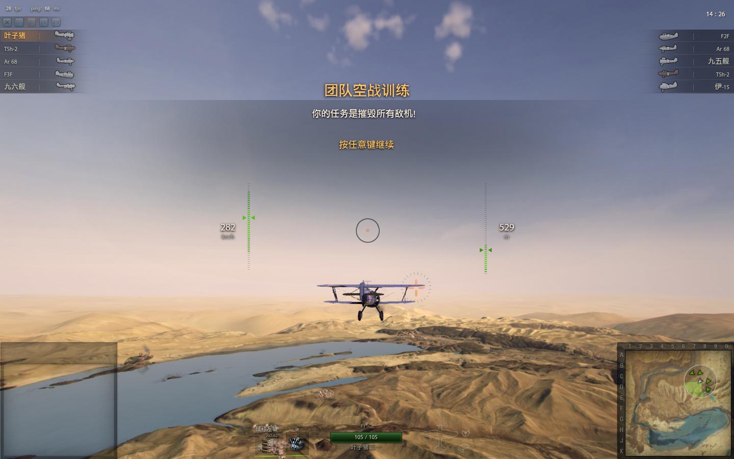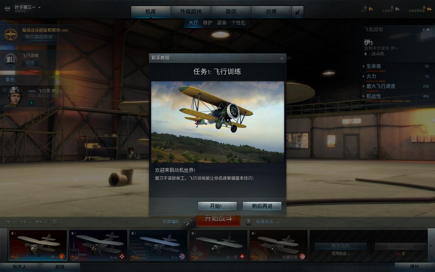 【叶子猪游戏网原创,转载请写明来源】 经过长久的等待和盼望,终于等到了今天,2月20日《战机世界》开测!开测时间是16:00,此次测试将持续至3月5日16时,请各位已经激活了账户的玩家准备好自己的战斗装备和精神状态,全副武装进入二战战场。如果还没有激活码的战友也无需失望,叶子猪发号中心还有少量激活码剩余,点击领取《战机世界》激活码>>> 这次的测试与上次的首测有什么不同,有什么新的玩法?小编和众玩家一样期待。就等待着开服时间一到,冲进去驾起战机厮杀一番! 《战机世界》新手训练 终于开服了!比官方公布的16时要早一些,进入游戏后无需创建人物,玩家的名称也是在创建帐号时预设的名称,可谓简单快捷,体验感加分。 刚开始进入的是机库画面,系统会提示是否直接进入新手教程,选择是之后就立刻开始了飞行训练。 在第一个任务叫“飞行训练”,主要训练基础操作,首个环节是操控战机方向的练习,玩家只需移动鼠标就可以轻松通过,然后是射击练习,需要击破三个固定的气球目标,难度也很低,接下来是击落一架残血的敌机,这次是移动的目标,玩家需要在控制战机方向的同时对敌机进行射击,画面上会有射击准星的提示,玩家只需稍加适应后便可轻易击落目标。 紧接下来是第二个练习任务叫“空中格斗训练”,战机更换了一架水牛,这也是想让玩家试驾不同的战机,体验不同的操控性、火力或射击精准度的区别。开始练习后,玩家前方会出现一架机动性较强的敌机,这时候需要玩家冷静瞄准,并小心不予敌机相撞,否则机毁人亡,任务也会失败,在面对这架机动性较强的敌机时,玩家可能需要不只一次的拉远距离再调转机头进行射击,这时候只要耐心应对相信问题不大。接下来的练习是从高空发动俯冲攻击,这也是在实战中时常可以运用到的技术,刚开始不适应的时候可能会打不中敌机,没关系,多反复几次就可以击毁敌机了。 第三个也是最后一个新手任务是“团队空战”,就是模拟标准战斗。在这个任务中,玩家只需保守战斗,保持战机不被击毁,基本就可通过任务。 总体来说训练模式的难度循序渐进,能让玩家轻松上手。训练模式也可以重复开启,不过没有任何奖励,相信各位玩家完成一次训练模式之后也不会再次点击了。