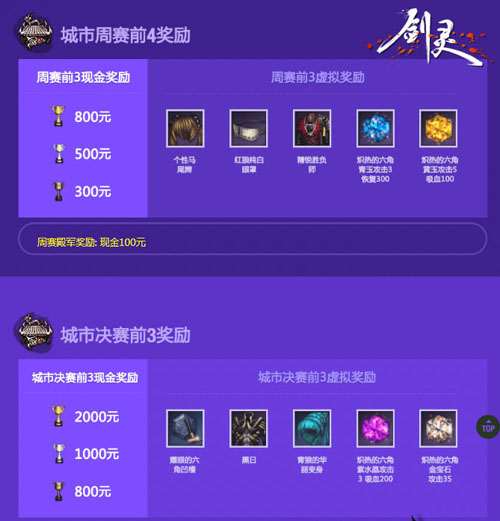 群英荟萃 打响武灵天下赛 此次《剑灵》举办的武灵天下赛,分为南区和北区两大赛区共30座城市。每一区会有两大周赛和一大城市决赛,两大周赛中最强的4名将汇聚一起进行城市决赛,城市决赛的冠军将晋级总决赛。南区于5月25日开赛,北区6月22日开赛,最终总决赛(7月19日—7月20日)选手将会由30个城市的城市冠军,及17173王者争霸赛优胜者(2名),共32名选手组成,敬请期待。 丰厚奖励 全员共享 武灵天下赛设有城市周赛、周赛16强虚拟奖励,周赛前4和前3设有现金大奖,而总决赛前3的玩家还将有机会获得万元现金。除了参赛玩家的特殊奖励外,《剑灵》还将发放海量礼包回馈全体玩家,包括报名即可领取礼品,转发赛事微博奖励,竞猜互动奖励等。公平的竞技环境、华丽的奖励阵容,静待玩家参与获取。 《剑灵》第一届武灵天下赛今日开打,全国30家城市等你参加! 更多详情请查看 剑灵官网:http://bns.qq.com 剑灵微信号:lovebns 关于腾讯游戏 腾讯游戏,全球领先的游戏开发和运营机构,国内最大的网络游戏社区。以“用心创造快乐”的理念,腾讯游戏通过在多个产品细分领域的耕耘,对多元化四大平台的打造,致力为玩家提供“值得信赖的”、“快乐的”和“专业的”互动娱乐体验。 腾讯游戏,用心创造快乐! (更多游戏资讯请访问叶子猪游戏资讯中心:http://news.yzz.cn/) [编辑:Echo]
