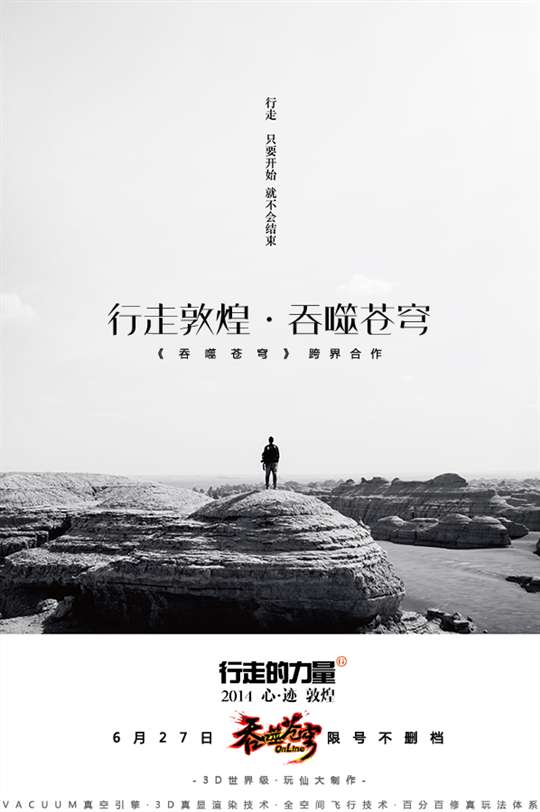 迅雷游戏与灵石游戏宣布,其共同运营3D世界级修仙大作《吞噬苍穹》与陈坤“行走的力量”正式合作,联合招募玩家行走志愿者,旨在给所有玩家一个对话内心的机会。以敦煌为设计原型的地图“迷雾沙洲”全面曝光,不删档资格与最新客户端今日同步开放,激活账号即有机会与陈坤一起走进敦煌,修行七天。 《吞噬苍穹》携手陈坤>> 携手“行走的力量” 全面招募敦煌行者 3D世界级修仙大作《吞噬苍穹》不删档测试资格现已全面开放申请,所有玩家可在官方、媒体等渠道获取测试资格,在此前参与测试拥有30级以上的玩家,则可以免激活进入游戏。在激活码发放期间,任何获得测试资格并在官网激活的玩家,都有机会成为2014“行走的力量心迹敦煌”行者队伍中的一员,跟随陈坤的步伐走进大漠,途径玉门关到达魔鬼城,开启一次心的淬炼。 行走即修行 陈坤鼓励玩家听从内心 《吞噬苍穹》选择与陈坤“行走的力量”跨界合作,是两者在修行理念上的终极契合所致。《吞噬苍穹》拥有创新的空战和完整的修仙体系玩法,让玩家遵循内心突破束缚,享受最纯粹修行之路。而对陈坤而言,行走是一场修行,人生也是一场行走,越安静的内心,就能拥有越强大的能量。尽管现在的世界吵杂,发现自己,就不会在人生的道路上迷失,其提倡的粉碎虚妄、听从内心修行态度将让玩家得到一次心灵上的自由。 《吞噬苍穹》成“行走的力量”首个合作网游 “行走的力量”心灵建设类公益项目是由陈坤在2011年发起,这三年里途径了青海、西藏及喜马拉雅等修行圣地,旨在号召人们通过最本能的行走,在行走中安静下来,与自己的内心对话,获得众多年轻人的高度关注。此次合作是网游与公益界的强烈“触电”,《吞噬苍穹》成为“行走的力量”首个合作网游,对年轻人进行心灵治愈式宣传,并真正给予机会大胆行走,史无前例地开创了业内合作模式先河。 飞翔在敦煌 “迷雾沙洲”地图全曝光 《吞噬苍穹》携手2014“行走的力量”,玩家不仅可以有机会亲身前往敦煌行走,在游戏内玩家同样走进沙漠无限飞翔。以敦煌为设计原型的地图“迷雾沙洲”全面曝光,在Vacuum真空引擎的渲染下,充满神秘感的沙漠和佛国古迹被精致还原,久经年月沉睡的佛国古船、毒辣的太阳与大漠风沙交织、巨岩与尘封的客栈相融,在全空间飞行的支持下,你可以到达任意地方,途中还会遇到古老的空中生物和眼前一亮的沙漠绿洲,如同走进了几千年前的敦煌画卷。 《吞噬苍穹》携手“行走的力量”,今日正式开放测试资格,行者陈坤邀你一起修行,让我们相约6月27日不删档测试。 《吞噬苍穹》微信:tunshicangqiong 《吞噬苍穹》官方网站:http://t.030303.com/ 3D世界级,修仙大制作 (更多游戏资讯请访问叶子猪游戏资讯中心:http://news.yzz.cn/) [编辑:小托尼]