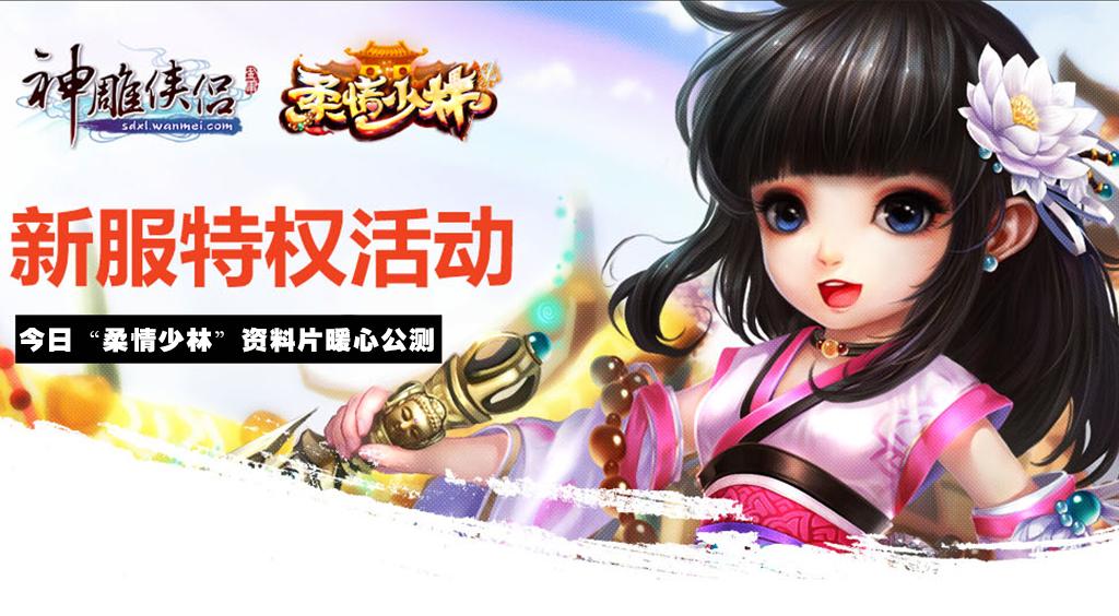 今日2D回合网游《神雕侠侣》年度资料片“柔情少林”12:00开启暖心公测!大家期待已久的全新职业-少林、新坐骑、新宠物、少林奇阵、跨服天梯、天珠系统等全新内容,终于正式向全部豪侠们开发!今日公测首开风陵渡大区双线新服【柔情少林】、【千年古刹】独送玩家四重新服特权厚礼;柔情少林特权卡八方来袭,引领雕丝快速升级;少林传功、老玩家重出江湖让新老玩家同享狂欢等精彩庆典活动就在今日暖心公测! 领取新手特权卡:http://event21.wanmei.com/sdxl/201305/sdxlhdnewcard/index.jsp 参与少林传功、回归答谢活动:http://event.wanmei.com/sdxl/trans/main/index 《神雕侠侣》年度资料片新内容速览:http://event51.wanmei.com/sdxl/201407/sdxlrqsl/index.htm 下载《神雕侠侣》公测客户端:http://sdxl.wanmei.com/download/index.htm 【年度资料片柔情少林今日暖心公测】 《神雕侠侣》年度资料片“柔情少林”今日携新门派少林重磅来袭,第十门派少林现已正式登场,作为武林中独树一帜的千年古刹少林一派,一向不问世事的他们也登上了《神雕侠侣》的舞台,代表着《神雕侠侣》少林人物在游戏剧情的进一步深入。同时,此次版本中的少林人物形象也给玩家带来了独一无二的造型印象——女少林,这一创新的门派外形设定突破了传统形象的成见,用反差型的人物性别设定带给大家充满时尚感的女少林视觉冲击,让传统与新潮结合,少林一派以独特的形象破关而出呈现在世人面前。在门派特色方面,少林不仅拥有更加持续更加爆发的输出能力,而且更通过技能的辅助,拥有前所未有的生存力,全新的培养思路加之丰富的战术定位,让玩家耳目一新的同时,更颠覆重组了传统2D组队格局,带来新一轮2D回合战斗职业搭配风暴。 除了新门派以外,大家还能在年度资料片中体验到新坐骑神勇毒蝎、新宠物仙兽寒潭妖姬和玄武;全新玩法少林奇阵邀群侠过招;跨服天梯耗时短PK爽0门槛加入,人人畅爽PK不是梦;天珠系统开放,打造极品装备助玩家全属性飞速提升;灵根慧骨坐骑新玩法统御坐骑、加成宠物强悍实力,让你体验最酣畅的战斗! 【大版庆典活动开启 全民狂欢乐享公测礼包】 公测新服四重特权活动 引领全民拿奖潮 为了庆祝《神雕侠侣》年度版本“柔情少林”公测,风陵渡大区今日增开双线新服【柔情少林】、【千年古刹】,勇敢告白的雕丝萌妹将信守约定,和大家一起入驻新服闯荡武林,一同相遇属于你的那个他!为了让更多玩家体验到新版本的新玩法、新活动,公测新服开启预约礼包、首充特权、日常双倍、冲级排行四重特权活动大回馈,同时还可千万官网新服特权页面参与领取每日签到大礼、幸运抽奖、充值促销尊享探索大礼等精彩活动,想要畅爽high玩就速速抢驻新服吧! 风陵渡大区双线新服-【柔情少林】、【千年古刹】 一重好礼:【预约礼包】现在马上前往新服预约页面抢驻【柔情少林】、【千年古刹】吧!登陆游戏即可凭借预约时领取的激活码,在临安或嘉兴NPC神雕处领取《神雕侠侣》新服预约礼包,内含丰厚奖励让升级之路无忧! 二重好礼:【首充特权】现在起首冲入驻新服的玩家将独享价值超过百元的首充大礼!任何玩家在新服充值达到6元即可领取首冲礼包,紫色侠士卡、全套完美装备、限量时装、至尊好友卡、杂学特权卡及大量元宝道具统统手到擒来! 三重好礼:【日常双倍】新服做日常系统将开启高达200%的收益奖励,完成师门、水贼末日、智闯绝情谷、万兽山庄等日常活动,高达200%的日常活动收益让你火速升级,迅速提升等级。 四重好礼:【冲级排行】新服冲级只要等级到达30,即可100%获得紫色侠客,参与角色等级、宠物、坐骑、装备、名师等大排行,全民都有机会获得丰厚大礼! 柔情少林特权卡 八方来袭雕丝速领 今日12:00《神雕侠侣》年度资料片“柔情少林”暖心公测,海量柔情少林特权卡已经为大家准备好了,速速抢注账号领取属于你的新手卡,兑换超给力福利礼包吧!除此之外玩家还可前往17173、新浪、多玩、腾讯、网易、52PK、叶子猪等各大媒体平台领取专属的媒体特权卡,同时微信、微博、论坛三大平台正在火热发放多种多样的柔情少林特权卡,快快行动吧!抢领礼包,召唤属于你的神龙! 传功少林 战力斗转星移 活动时间:即日起至8月17日 老服朋友不多?新服热闹却舍不得老账号?有这样困扰的玩家有福啦!为了方便老玩家玩新角色的时候度过前期繁琐的升级阶段,现在新开放的少林传功让你新服再享老服待遇,只要你是在老服之中拥有≥80级的角色(且处于非寄售、封停状态)就可以为你今天新建的账号传功啦!传功成功后不要忘记在神雕处领取传功礼包哟!里面可藏了超多绑银、紫色宠物、历练声望、卓越精魄、坐骑等超赞宝物! 豪侠重出江湖 回归大馈送火热进行中 活动时间:即日起至7月31日 《神雕侠侣》年度资料片“柔情少林”吸引了众多武林豪侠回归,为了能让回归的群侠能够更快地适应《神雕侠侣》的生活,此次新版本为各位英豪准备了每日100%中奖的抽奖机会,专为回归群侠定制的高级元魂珠礼包、神兽万能符、高级琼浆、五级灵兽果和周边键盘、鼠标、雕雕公仔等超多专享大礼激情回馈中,实用又给力的回归答谢不信你不心动! 《神雕侠侣》年度资料片“柔情少林”今日暖心公测,新门派少林一派正式登场,新坐骑新战宠灵根慧骨再进阶,全民神兵育成体系打造个性神装