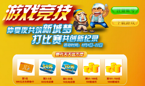 2014年,什么棋牌游戏最好玩?这个夜晚你无聊吗?你是否常常无事可做,你是否想要一个好玩的东西来打发时间?这里有“运筹帷幄之中,决胜千里之外”,也有棋艺的比拼,更有火爆比赛的激情。即日起至8月22日,新城地带(www.nczgame.com)诚邀您“仲夏夜共筑新城梦,打比赛共创新纪录”。 1、 活动期间,每天晚上19点-22点,进入仲夏夜比赛专用房间参与竞技。 2、 竞技期间,进入仲夏夜比赛专用房间即获得10W新城币(仅供比赛使用),比赛结束后,新城币排名前150名的玩家获得相应奖励: 第1名:500元京东购物卡 第2-5名:50元电话费 第6-50名:10元电话费 第51-100名:1W新城币 第101-150名:1000新城币 棋牌在中国已有数千年的历史,对于中国人而言,它不仅仅是一种游戏,它也象征着一种文化。棋牌中人与人之间智慧的较量使参与其中的人都能够从对弈中去参悟一些人生的哲理。在这样的环境之下,一个全新的游戏平台——新城地带(www.nczgame.com)棋牌游戏平台孕育而生,并且不断的发展壮大。 随着物质水平的提高,人们更加重视精神生活的品质,棋牌游戏以其智力开发、休闲娱乐、生活趣味等特点被人们普遍的接受。中国内地自主研发的首款网络游戏就是棋牌游戏。 目前,国内已有数千家网络棋牌游戏平台。当棋牌游戏在生机盎然、蓬勃发展的时刻,虽然带来了丰厚的回报,同时也带来了危机。棋牌游戏本身玩法简单、规则统一的特性,使所有的棋牌游戏平台都是千篇一律。面对棋牌行业如此现状,游戏棋牌游戏厂商为了盈利,不惜触犯法律,把棋牌游戏平台变为赌博平台。赌博还是休闲,棋牌游戏该如何发展?棋牌游戏要想吸引更多的玩家,走出十字路口,或许棋牌产品多重发展将会是一个新思路。 现在棋牌游戏的核心内容主要有休闲娱乐和竞技角逐两种,前者的典型代表是QQ游戏,后者主要是一些新锐游戏平台,主要代表有新城地带。虽然它们作风悬殊,但是同样都得到了玩家的许可。然而,棋牌游戏要想得到突破发展就必须在坚持原有平台核心内容的情况下不断的推陈出新。 新城地带之所以能够成为新锐游戏平台中最受认可的棋牌游戏,它的主要优势则在于,以竞技为核心内容并且在坚持竞技的基础上,对原有的棋牌产品进行了近一步的优化,为了让玩家得到更多的乐趣,新城地带在竞技比赛活动上不断的推陈出新,真正地将棋牌的精髓发挥到极致。 更多游戏精彩内容请访问:http://www.nczgame.com 新城地带官方微博:http://weibo.com/u/5135482216 新城地带微信号:nczgame 新城地带QQ群2号群: 227993697。 (更多游戏资讯请访问叶子猪游戏资讯中心:http://news.yzz.cn/) [编辑:唐泽]