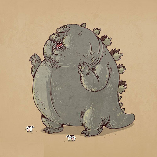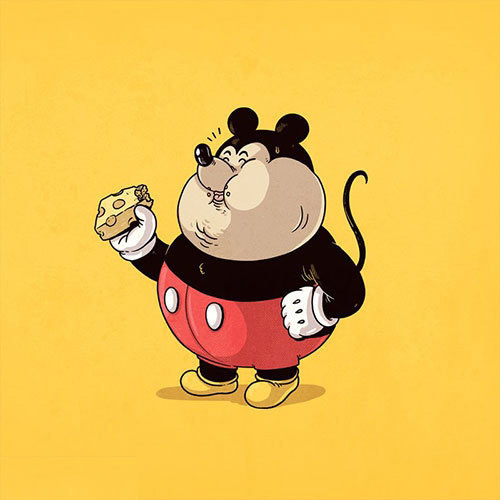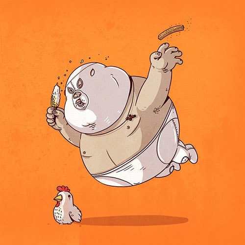 Instagram知名设计师AlexSolis有一个很丧病的插画系列,叫做《FamousChunkies》(著名肥仔)。这个系列的特色,就是把那些群众喜爱的角色变成肥得快要爆炸的死胖子……让他们全部成为汉堡,可乐,热狗,炸鸡,薯条,甜筒,披萨等高热量快餐食品的受害者。而题材也超级广泛,公众人物、游戏角色、超级英雄、卡通形象等无所不包。 作者通过这些令人忍俊不禁的球形角色,来告诫如今物质生活极大丰富而导致平均体重不断增长的美国人:一白遮百丑,一胖毁所有!(其实别有一番风味不是吗?)