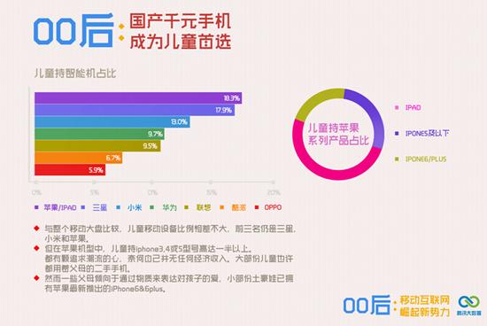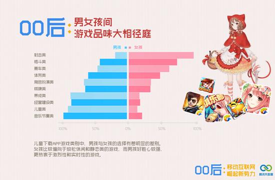 腾讯大数据今日发布了《00后专题数据报告》,针对00后智能手机和手游偏好进行了分析。 以下是报告内容: 10个儿童中已有3个是手机用户 ![]() 作为互联网的原住民,00后比90后更早地接触丰富的网络信息,高于三分之一的14岁以下的儿童已持有智能机。 但还有很多家长会可以减少手机上的娱乐功能。一大部分的孩子无手机或只有通话短信功能的“傻瓜”手机。 男女孩手机用户数量比较均衡 ![]() 男孩的移动设备持有率为65%,女孩移动设备持有率35%。相比女孩来说,男孩对电子产品更加敏感,对游戏的依赖性强。 初中生是儿童群体中持有智能机最大群体 ![]() 儿童移动设备持有数,与年龄的增长趋势呈正比,随着孩子们长大,在这个需要在互联网大量获取信息的时代,手机成了刚需。 国产千元手机成为儿童首选 ![]() 与整个移动大盘比较,儿童移动设备比例相差不大,前三名仍是三星、苹果和小米。 但在苹果机型中,儿童持iphone3,4或5型号高达一半以上,都有颗追求潮流的心,奈何自己并无任何经济收入,大部分儿童或许都用着父母的二手手机。 然而一些父母倾向于通过物质来表达对孩子的爱,小部分土豪娃已拥有苹果最新推出的iPhone6&6plus。 大屏幕也受儿童的青睐 ![]() 儿童使用手机的尺寸中,以5寸和4.5寸最风靡,可以提高他们平时玩游戏和看动画片的用户体验。 性价比是父母给孩子挑选手机的主要决策 千元机价位以下的手机机型超过了总体的一般,目前00后都处于小学或者初中阶段,缺乏经济来源,需要通过家长去帮助他们实现物质消费,而智能机在不同价位中功能差别不大,性价比这一条是家长给孩子们选择手机的首要消费决策。 男女孩间游戏品味大相径庭 ![]() 儿童下载App 游戏类别中,男孩和女孩的选择有着明显的差别。 女孩比较偏向于放松休闲和静态类的游戏,而男孩好胜心比较强,更热衷于积累性和实时性的游戏。 儿童持移动设别城市分布 ![]() 在用户持有移动设备大盘中,除了北上广深这四个经济较发达的一线城市,在信息业繁荣相对蓬勃的城市如杭州、成都等也有很多儿童群体已开始使用智能机。 有旺盛的社交需求 ![]() QQ与QQ空间是00后最主要的社交工具,QQ中个性化的设置如QQ秀、QQ宠物等都能让00后们去更加形象地表达自己的态度和风格。 鉴于微信社交天然的封闭性,00后的微信用户数明显少于成人,00后需要一个更开放的平台去彰显自己。 (更多游戏资讯请访问叶子猪游戏资讯中心:http://news.yzz.cn/) [编辑:路过一只酱油]