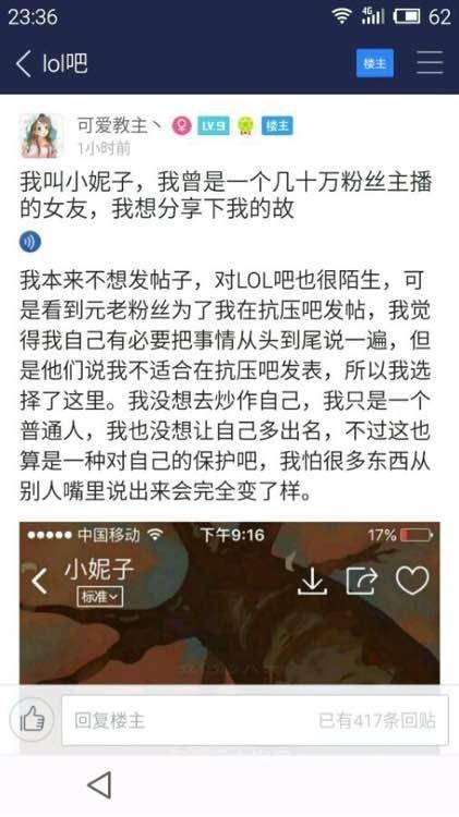 《英雄联盟》圈子经常有一些“奇葩”事件,圈内各种的精彩“撕X大战”也让玩家看的非常过瘾。这不日前,又一位LOL主播摊上大事了!原因是他的前女友(一位单亲母亲)在贴吧控诉他的所作所为,如何狠心抛弃自己、如何和其他美女主播谈情说爱。至于孰是孰非,各位看官自己判断吧。 事件:一位昵称“安妮”的网友在贴吧发帖爆料,称自己是LOL主播“杀神风”的女友,但是遭到了杀神风的抛弃。两人当初相恋时,事件的男主杀神风18岁,女主安妮自称20多岁,是个带着小女孩的单身母亲,16岁时生了这个女儿。帖子内容主要讲诉杀神风如何狠心抛弃自己,另寻新欢的故事。 而杀神风对此立刻在在微博上做出回应: 此时此刻,我不得不站出来说点什么了。这两天的舆论铺天盖地而来,很感谢一直以来选择继续相信我的粉丝们。 如果我说网络是一个虚无缥缈的世界,那么在2014年深秋我们的邂逅,却带给了我一份无比真实的情愫。 我只是一个很普通的男孩,是一个刚刚直播了没多久的主播,下了直播大多数时候甚至少言寡语,那时候的你懂我内心最深处的自卑与冷漠,涉世未深的坎坷苦楚。我们自然而然的在一起了,我并不在乎你的容貌是否俊美,第一次见面发现你真人与之前发给我的照片不一致然后你向我解释的时候,我并没有任何质疑、失望的情绪,因为经过长达几个月的交流厮守,我爱上的是你纯洁善良的内心,外在,只是躯壳而已。 后来见你,你说你刚放假,问及你在哪所大学读什么专业时,却被你的一句搪塞之言轻易带过,我没有怀疑过你,至始至终都没有!你说你为了我没有丝毫犹豫的做了隆胸手术然后一周就来见我,那么手术的伤口在哪里?暂且不论这件事情的真伪,我就问一句,我在你的心目中就是如此的肤浅吗? 还有,曾经向我年迈的父母提起过你的善解人意、温柔娴静,当他们表示赞同理解时,那时候我内心的喜悦我想你是无法感同身受的,2015年,我只有18岁,正当少年,这份至纯初恋让我无数次的憧憬我们的未来,哪怕没有很多钱,只要好好的在一起也是莫大的幸福不是吗?直到过了一年,纸包不住火了,当你亲口告诉我你还有一个6岁的女儿的时候,我感觉连呼吸都困难!你让我明白了我们为期大半年的相处中存在那么多的欺骗,五雷轰顶的感觉你知道吗?!我多么希望这只是一个噩梦醒来就不会是真的。迄今为止我还记得,在电话里你哭着对我说的那些话,字字戳心,我舍不得你,真的。哪怕不能接受这个事实,我相信你是无辜的或者那只是年少的时犯下的错误而已,我愿意和你一起承担,这也就是你晒出的那些聊天记录我所说的话,但是我们都忘了,去年的那个时候,我也只是个刚满18岁的孩子,生活的艰难坎坷哪能容我们这般不食人间烟火呢?我来自一个贫困传统的家庭,你能明白那时候我内心的绝望吗?这边是你,那边是声嘶力竭要和我断绝亲子关系的父母!养育我成人的父母啊!经过最痛苦的那几日的深思熟虑,我知道我们今生是无缘在一起了,难道你认为我在作出这个决定的时候内心不是煎熬的吗? 所有的一切都是我始料未及的,关于你的年龄、你的家庭情况,如果一开始你告诉我,大不了成为朋友也不至于像一把刀一样插进我心里再抹点盐拔出来,这一份感情时至那日,恐怕已经流失掉了所有的信任与走下去的勇气。 分开的那段时间,我心情跌至谷底,知情的粉丝们纷纷猜测和你分手的原因,我选择沉默,因为为了保护你的隐私与自尊。 可是我想问你,我们在一起的时候,为支持我的工作,我的粉丝群都交由你打理,分开后,为什么把一些群解散了呢?这一举动对我事业的影响有多严重你应该知道吧?算了,我相信你也只是一时冲动,我不怨你。我也一直告诉自己,你当初选择隐瞒这些事情也只是为了不伤害我,我也不怪你。可为什么经过15年10月份到现在这么长时间之后,你突发长篇大论,处处诋毁我,扪心自问一下吧,这大半年来我对你的付出难道就可以被你避重就轻的叙述方式一笔勾销吗?我的感情在你看来就一文不值? 真正的感情是容不得这样的欺骗的,过去的事就让它过去吧,我们在一起大半年,自认问心无愧,我爱过你,当我不再爱你的时候,不是我不爱你,只是我已不能再爱你。 当我看到帖子里你对我无端无据的谴责时,内心充斥着无奈与憋屈,过去的林林总总,我不否认你对我的感情,但是我当初力所能及为你做的,你能就此遗忘、甚至推翻吗?我相信你能惑乱众眼,但终究欺骗不了你自己。 我是一个男人,你是一个女孩,一个6岁孩子的母亲,这也是我没有办法逼自己将我们之间发生的一切细节公诸于众的原因。我希望你好自为之,尽孝道别再劳烦伯父伯母了,把她接过来好好照顾她,坚强起来,你会遇见那个对的人的。 这件事情,就此为止吧!你好自为之,倘若继续信口雌黄制造舆论,我可以奉陪到底。 对此,有些网友表示赞同杀神风的行为,认为安妮就是想找个接盘侠;有些网友则认为既然一开始选择在一起,就需要包容女友的过去;有些网友更认为这是一起十足的炒作!大伙怎么看待此事? ![]() (更多游戏资讯请访问叶子猪游戏资讯中心:http://news.yzz.cn/) [编辑:一一]