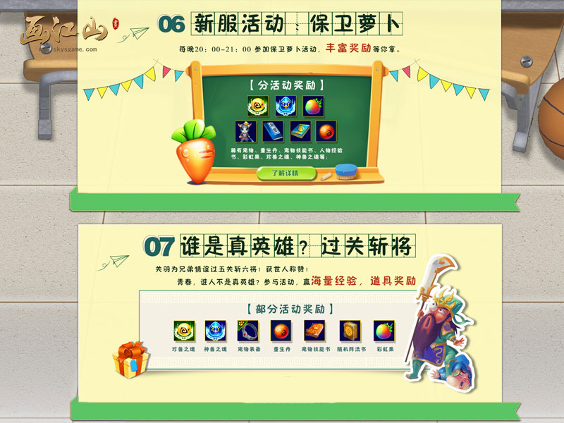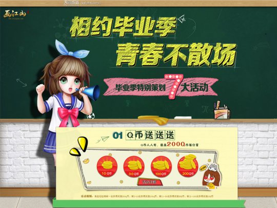 《画江山》毕业季学妹新服来袭! 纪念那些如白纸般纯洁闪耀的漂亮学妹! 纪念那时胆小怕羞的不像话的自己! 纪念我们的成长!纪念那已逝的青春岁月! 盛夏光年,光影泫然,一切的一切,只为追忆有你的似水年华。 【毕业季特别版新服---似水年华】 还记得我们如同梦幻一般,青涩间夹杂着少许坚毅的踏入了校园。为了纪念那个让人难忘的时光,《画江山》在这个毕业季,推出学妹新服【似水年华】! 浪漫伤感的新服名称,怀旧卖萌的校园装扮,生动有趣的开服活动,让你在新服体验似曾相识的校园快乐时光!也许你在这个夏天刚刚毕业踏入社会,也许你还有时间尽情享受校园生活,《画江山》新服似水年华,给各个阶段的你带来不一样的感动和精彩!校园元素将吸引大量学妹的加入哦~痴汉们让我看到你们的双手! 【怀旧毕业季,饱含回忆的校服套装】 说起来那生涩的第一次入校记忆,不安与期盼混杂的心情,至今让人历历在目吧。当穿上崭新的校服时,俨然感受到与学校更亲近了些。《画江山》将在新服开启全新校园装扮,潮流时尚校园风席卷《画江山》,快来穿上属于你的校服感受青春的气息吧! 清新亮眼的颜色搭配,熟悉怀旧的衣服样式,是不是让你想起了曾经坐在教室奋笔疾书的自己呢。校服一定曾是你最讨厌的服装榜首。而离校之后,你是否会在看到学弟学妹穿着校服嘻嘻哈哈的时候心中百感交集?再没机会穿上这件皱巴巴的衣服没心没肺的笑了。。。别伤感先!《画江山》给你这个机会! 另外头像也有校园风哦~搭配好自己的头像变身学弟学妹吧~卖萌抱大腿什么的要多方便有多方便! 【轻松回合!快乐交友!尽在画江山!】 回归了游戏本性---交友、互动、轻松、愉快的《画江山》,用幽默诙谐的剧情,清新亮眼的画面,给你带来最愉悦舒适的游戏体验。摆脱了劳心费神的加点制,进行了精美2D与全息投影3D融合的创新,加上全民级别无限制的光武系统,让你玩的畅快淋漓!这样的《画江山》,也在不断成长哦,独创帮战MOBA新玩法还有个性十足的天赋系统,都能给你的游戏带来无限惊喜! 【唤醒你的沉睡活力!开服活动要你奖励拿到手软!】 [青春冲冲冲!Q币送送送!] 年轻就是要活力!年轻就是要打拼!7月1日到7日,在新服升级拿到好名次,就可以得到海量Q币奖励哦~! [传播祝福送校园时尚装扮] 通过微信、微博、微信朋友圈、QQ群、微信群,总之你能想到的所有途径成功转发新服主题活动宣传片:相约毕业季,青春不散场,一起《画江山》。即有机会赢取2016限定校园时尚装扮! [价值2888满级保送礼包和酷炫紫装来拿咯!] 每提高10级就有奖学金奖励哦~物品、道具、宝物,只有你想不到!开服当天开始保持连续签到,就可以天天领壕礼!橙装紫装助你勇闯画江山! [萝卜保卫战&过关斩将,画风不同我照样拿第一!] 为了缓解各位新生在新服的紧张与陌生感,玩家们熟悉的萝卜保卫战和过关斩将也来啦!和萌萌哒的小动物们打架争夺粮食,开动学霸脑袋勇闯关卡,胜利一定属于你! 【什么这么多游戏福利你还不满足?!】 知道你们任性,所以《画江山》还有更多更实惠的福利等着呢!只要前往官网下载游进行试玩就有机会获得iPhone6s plus,首次充值更能拿到升级变强必备的物品道具。除此之外,游戏赚钱两不误,日赚300软妹币不是梦,可不是说着玩儿的哦~妈妈再也不用担心我玩游戏不动脑筋了! 《画江山》毕业季特别版新服,似水年华!等待你的加入! 三十功名尘与土,八千里路云和月。金戈铁马,气吞万里如虎;壮志凌云,势拔山河似蛟。红袖赴琼阁,执手《画江山》! 《画江山》官方微博:http://weibo.com/hjsol/home?wvr=5&lf=reg 《画江山》官方微信:TQ_huajiangshan |