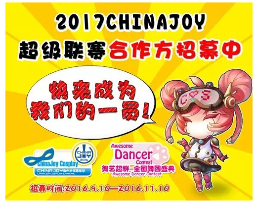 ChinaJoyCosplay嘉年华已成功举办14年,一直被誉为业内最具影响力的cosplay大赛,每年都吸引大量来自全国各地的爱好者与观众参与其中。加之2016“舞艺超群-ChinaJoy全国舞团盛典”的加入,共同组成ChinaJoy超级联赛。回望过往,ChinaJoy超级联赛的成功离不开在背后支持我们的小伙伴们。而在未来,2017年ChinaJoy超级联赛也必将延续着改革与创新的思路,为我们带来更多的动感与活力。 2017年ChinaJoy超级联赛全国分赛区合作单位招募工作已启动一个月时间,全国各地诸多单位已向主办方投递了招标资料。招募工作于11月10日截止,还未投递资料的企业单位烦请尽快提交。 投标资料下载地址:https://pan.baidu.com/s/1pKKantp 主办单位面向中国大陆地区征集各分站赛的承办单位及赞助企业。 若您的企业属于以下类型,皆可申请: 1.当地平面、广播、电视媒体或机构; 2.游戏动漫相关企业; 3.广告策划或公关公司。 招募地区包括 中国大陆地区 (对于原有赛区将采取优胜劣汰的方式进行筛选,而对于新近报名的赛区,也将严格评定承办资格。) 更多相关信息敬请留意ChinaJoy官方网站: www.chinajoy.net 有意者请联络 李女士 QQ:2853281013 电话:010-51659355-8007 传真:010-58615093 Email:limin@howellexpo.net 后续信息敬请关注: 官方微信号码:CJ_Cosplay (或搜索“CJCosplay嘉年华”) ChinaJoy Cosplay封面大赛官方网站 http://www.c3online.com.cn 新浪微博主页http://weibo.com/chinajoycosplay ChinaJoy官方网站 http://2016.chinajoy.net |