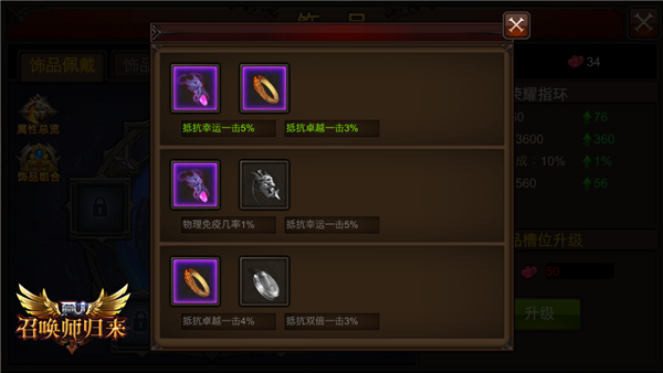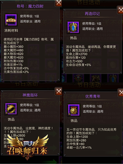 玩儿了那么久的《全民奇迹MU》手游,对于战斗力这样游戏中的重中之重,相信玩家朋友们都有着自己的独家看法与提升之道。不过,你是否也以为把当前版本中所有的系统都提升到满级,就走到了《全民奇迹MU》的战斗力提升终点了呢?或许,在你未曾太过留心的一些地方,还潜藏着奇迹勇士们战斗力不断晋级的可能!那些没有佩戴在身上的道具,或许也能够为咱们带来战斗力的全新提升! 个性化选择,奇迹称号大观 称号算得上是《全民奇迹MU》中最早出现,无需佩戴,只要不断收集便能为咱们带来战斗力提升的系统了;截至目前,奇迹大陆上已经出现的称号可谓是花样百出,而无论咱们选择哪一项称号佩戴,都能获得所有已获得称号的战斗力加成总和! 悦目新衣橱,时装衣柜 新春套装、庆典套装、婚礼套装,随着套装进阶系统的开启和时装衣柜系统的上线,原本只能佩戴一件的套装,终于变得愈多愈好了。如今,无论玩家朋友们选择哪一件套装进行佩戴,都能获得对应等阶的三大套装所带来的战斗力提升总和!而随着《全民奇迹MU》版本不断更新,越来越多漂亮且强大的套装出现,想必时装衣柜会有更加出色的表现。 战力新主张,饰品有话说 在《全民奇迹MU》2.20版本上线,饰品系统出现之后,玩家朋友们终于又有了新的收集项目,无需重新升级,只要更换佩戴便可提升战斗力的机会。由活动饰品和成就饰品两部分组成的全新饰品系统,成为了奇迹勇士们关注的新焦点。 值得一提的是,饰品系统的佩戴槽位是随着玩家朋友们将饰品槽位进行升级而陆续开放的;也就是说,想要佩戴更多的饰品,还需要勇士们不断积累才行。 而与精灵奇缘系统一般,除了饰品本身所带来的战斗力加成之外,饰品之间更能形成组合,给予勇士们额外的战斗属性增益。 活动诚意满满,战力飞跃契机 那么,究竟要如何获取这些能够不断提升咱们战斗力上限的好东西呢?庆典活动就是一个不错的选择!以最近《全民奇迹MU》中正在进行的新一波活动为例,便焕新登场了“称号:魔力四射”和“再造印记”、“神鹰指环”、“优秀青年”三大饰品。 其实,《全民奇迹MU》中能够不断开启咱们战斗力上限的系统和道具远远不止这么几类,精灵系统、宝石系统等都是勇士们在奇迹大陆上冒险闯荡过程中可以不断收集以开启战斗力新价值的内容。《全民奇迹MU》的强者之路,从来就是一条永不止步的勇者攀登之路! |