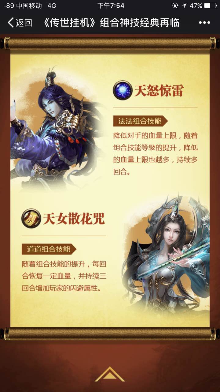 千呼万唤始出来,《传世挂机》组合技能版本今日惊喜登场。承袭传世经典,《传世挂机》六大神技威力更猛,特效更炫。此前,掌上中州众勇士们的天马行空猜想与期许,今天尽数揭开面纱,到底这些神技如何逆天!赶紧登陆掌上中州体验一番吧! 期盼许久,《传世挂机》组合技能新版今日火爆登陆,六大神技惊喜降临着实让勇士们咋舌。怒斩天下、迷光烈焰、火毒攻心剑、天怒惊雷、神之召唤、天女散花咒,光名字估计就足以让对手闻风丧胆了吧,更何况它们还具有爆炸的技能输出、增益效果呢。以双法组合技“天怒惊雷”为例,不但可以造成超高的魔法伤害,还可以减少敌方的血量上限。在PK、打BOSS中都可以发挥出逆天的效用。 今日六大神技正式亮相,吸引了一大波的勇士们强势入驻掌上中州,他们纷纷跃跃欲试想尝第一波鲜。《传世挂机》组合技能,需要勇士们开启天元心法系统并将天元心法等级提升40级,而后开启元神附身和元神技能之后,才可使用。吊炸天神技只配实力勇士才可拥有,你是吗? 《传世挂机》今日的重磅更新,六大组合神技的现世不禁勾起了众多传世迷内心的美好回忆。回想当时在传世PC端的纵情使用组合技能的快感,今日《传世挂机》各大行会纷纷向传世兄弟发布邀请函,重新征召兄弟们一起约战沙城。曾经的热血燃情今日在掌上中州大陆上迸发,还在迷路的传世兄弟们,《传世挂机》喊你回家攻沙啦! 随着六大组合技能的降临,着六大组合技能的升级也将开启。玩家可以通过消耗天元值对组合技能进行升级。组合技能的伤害和效果会随着技能等级的提升而提升。如升级天怒惊雷技能会提升锁血效果,提升迷光烈焰的等级则会使技能降低敌人更多防御属性。 《传世挂机》六大组合神技已经火爆上线,还未尝鲜的勇士们赶紧登陆掌上中州,一起细细品味、热血厮杀起来吧! |