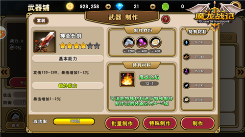 《魔龙战记》上线已有20天左右的时间,经过多日的奋斗与研究,本人已经从迷茫的新手小白进阶到了一只半熟的老鸟(吐血ing)。如今回顾自己的升级之路,确实吃了不少苦头,所以借此机会分享一下进阶经验,希望可以帮助到更多的冒险者们。今天首先来说一说被大多数玩家忽略的城堡建造,这里面可是蕴藏了不少秘密哦。 游戏中每个玩家都有一个自己的城堡,大家可以提升建筑的等级来打造家园。建筑和英雄一样,每提升一个等级都会有更加绚丽的外观,看着自己的小窝变得越来越漂亮,心里当然是美滋滋的。 如果你主城经常被人攻陷,资源老是被抢,那么请来升级你的建筑吧!除了美之外,提升建筑等级还是抵挡他人侵略的有效途径,建筑本身的攻防能力有效提升不说,咱们还可以在建筑中加入驻守英雄。提升主城等级还能解锁主城守护者,总共6个兵种让大家培养,每个兵种都可以升级升星,钱包可要准备好啊。当你把防御做的足够的好,就让那些胆敢来掠夺的人吃不了兜着走吧。 打造是城堡中非常有趣且实用的功能,武器、首饰、防具以及药品宝石等都可以在建筑中打造而来,非洲人抽不到高星装备也无需难过了。本人就用批量打造的功能做出了属性不错的S级武器(打造全是D?那真要洗洗脸了……),过渡用还是绰绰有余的。 说了那么多,其实就是想告诉大家不要忽视了自己的家园,我们可以在城堡中获得很多资源,回报可能远远高于闯关所得,盲目的追求过关成就并不可取,养精蓄锐自然可以一日千里。 《魔龙战记》是一款以西方魔幻世界为背景的热血激斗3D攻城手游,其抛弃刀塔、三国、西游等所谓“传统经典”,由韩国工作室顶尖写手原创架空世界,空中网原味引入和翻译,加上精细化美术设计,独有个性和动作特点的角色设计,引你走入那个光与影斗争的魔幻屠龙世界。 |
