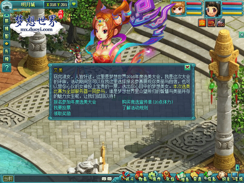 《梦想世界》2016年年度选美大赛正式开始!这里有倾国倾城的角色佳人,有出水芙蓉般的素颜女神;有名艳四国的国色天香,也有鬼灵精怪的俏皮萝莉……《梦想世界》全服选美大赛正式开始,光棍节即将来临,快来给心仪的女神投上一票吧! 年度选美 绝色佳人 《梦想世界》2016年年度选美开始,VIP等级≥30级,非VIP等级≥40级的玩家即可到明月城艾美处报名参赛,或者是给心仪的女神投票,每人每周的投票次数有限,投票前请慎重选择。玩家也可通过官网进入“梦想美少女”年度选美专题页查看比赛情况,快和小伙伴一起参加吧!还有可能获得神兽、专属称谓以及限量周边哦。 全服美女 脱单指南 绝色佳人和俏皮萝莉谁是你心中的梦想情人呢?《梦想世界》优质美女尽在2016年年度选美大赛,光棍节即将来临,想要脱单的侠客们还不快快行动起来,为心仪的女神投上一票,还有可能碰到你的“另一半”呦! 超萌神兽 双十一“剁手”节 除了全服选美比赛之外,《梦想世界》还为各位侠客们准备了超萌神兽“雷吉斯”限量拍卖和全新翅膀特惠礼包。会对你比爱心的神兽和“半价”翅膀礼包,哪一个更令你心动呢? 关于《梦想世界》 《梦想世界》是多益网络推出的高端回合战斗网游,拥有富有策略的战斗系统,11个流派421种招式,相生相克变幻无穷。独创电影式副本,带你穿梭古代未来,结交关羽,飞上太空战机械之王,探索超乎想象力的奇幻世界。随心打造个性角色,华丽翅膀、拉风坐骑、多彩光环、超萌小精灵等自由搭配。实时语音畅聊,结交游戏好友,遇上唯美爱情,一起闯荡武侠江湖。 了解更多相关信息,请前往http://mx.yzz.cn/ |