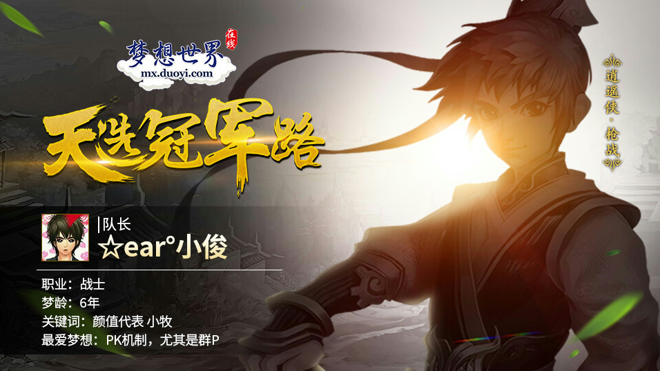 《梦想世界》全新内容“比翼双飞”已正式开启,飞行时代降临,让我们一起相约明月之城!天选之战作为《梦想世界》最高级别的巅峰对决,将回合制战斗美学体现的淋漓尽致,今天小编就带大家走进我们的天选冠军玩家队伍——青春不老 洛阳不散,看看他们是如何力敌千钧胜群雄! 梦想大玩家 《梦想世界》在征集这样的“梦想大玩家”!他们,也许是高高在上的天选之神,也许是默默无闻的武学宗师;她们,也许是倾国倾城的绝色佳人,也许是为梦想谱写“琴棋书画”的活力少女;他们,也许是声名显赫的一帮之主,也许是身边陪伴自己的朋友。来“梦想大玩家”,推荐你身边的好友、大神,自荐自己的一腔才华,向世界展现你的魅力! 天选冠军路 “特别难忘为了一个目标日以继日的奋斗,每天开机就是录像的日子。也特别感谢,队伍里每一个人,所有的一切都是大家一起努力的结果,感谢大腿为了队伍洗坐骑,洗装备属性,洗BB。感谢小乖和小砾、小枫,毫不质疑的转职业感谢秋姐第一个锻起来满锻法宝为了支持我们,感谢他们一直以来的支持”队长小俊如是说。洛阳牡丹区小俊队伍的成神之路,天选冠军队的奋斗之路,毅然更换配置的信任,两个月删号重练的坚决,终成冠军却被质疑,直至向世界证明了自己的势力。 全服选美 奖品多多 《梦想世界》2016年年度选美开始,游戏角色为女角色的女性玩家,VIP等级≥30级,非VIP等级≥40级的玩家即可到明月城艾美处报名参赛,参赛玩家在游戏内上传2~5张真实个人照片,并填写参赛宣言即可参加比赛;凡参与活动即有机会获得神兽、公仔周边、游戏奖励等。具体根据作品和评选结果还可获得如“年度选美总冠军”等专属游戏称谓 了解更多相关信息,请前往http://mx.yzz.cn/ |