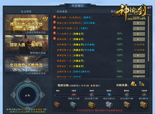 人为财死,鸟为食亡。这是自古以来的现实写照,金币,作为9377《神谕之剑》一种重要的游戏货币,它主要用于强化、技能学习、购买游戏道具等途径。借此9377《神谕之剑》不删档四服预创建开启之际,接下来就为大家推荐一下游戏里面一些常见的金币获取方式吧。 在9377《神谕之剑》里,贸易挂机、个人运粮、窃符救国和求索经典这四个,必做,钱多不解释,5星推荐!敌国抢马、边境破坏、镇守边关,三个一起,花点小时间,多赚外快,4星推荐! 而9377《神谕之剑》家族任务运粮、运矿、收税等家族任务需要先加入家族且须由族长或副族长开启任务,虽然相比个人任务灵活性略有不足,但是奖励却非常可观,3.5星推荐! 商行天下建议跟团,耗时比较长,需要有一定技巧,3星推荐 。余下的9377《神谕之剑》鬼谷奇阵金币奖励和最终获得的积分有关,不稳定因素较多且耗时较长;而刺客列传、国家宝藏在金币这方面产出相对较少,所以建议在上面任务完成的情况下,再做这些这些任务,2星推荐 。 推荐日常任务路线为:镇守边关——敌国抢马、边境破坏(不分先后)——窃符救国+求索经典(一起做,避开劫符高峰)——个人运粮(避开砸车高峰)——家族任务——3星、2星推荐的任务——挖宝——贸易挂机 每天把任务清一遍的话,坚持2周,4档宝石套唾手可得!当然,金币获取还有很多途径,如9377《神谕之剑》砸车、逐鹿、国战、僵尸战场等等;并且等级越高、家族任务人数越多、各种加成越多,所获得的金币就越多!到这里,相信大家都明白一条耳熟能详的真理:天道酬勤,勤劳致富! 真国战,召必回!9377《神谕之剑》不删档四服预创建现已震撼开启,超强打击千人战场万人国战再次呈现!9377《神谕之剑》是一款大型多人在线即时战斗网游,唯美画风再显千年华夏山河。游戏PK不站桩,无锁定战斗系统,浮空、连招超炫打击,四大职业特色鲜明,7+X技能简约多变可强P可偷袭,国战烧脑策略新系统重现三国混战,进入神谕之剑点燃你的狂热战火! 了解更多相关信息,请前往http://news.yzz.cn/ku/syzj/ |