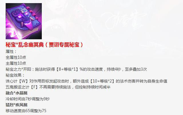 《梦三国2》第七届竞技场成就终于更新了,伴随着第六届的结束,第七届竞技场成就正式闪亮登场。据小编亲自验证,本届竞技场成就的奖励物品绝对堪称史上最强。如有不信,还请自行进入游戏验证哦! 好了,下面进入正题,其实小编今天要给大家带来的是另一个好消息。那就是梦三国新增了一组神秘的专属秘宝道具。 什么?你不知道秘宝是什么?那你的消息也太不灵通了吧,秘宝的出现早已在梦三国的战场上掀起了一轮血雨腥风呢! 废话不多说,先上一张图吧,这样大家就可以对秘宝有个直观的感受了。 怎么样?现在知道秘宝是什么了吧。没错,就像专属武器一样,秘宝道具也是固定英雄的特有专属道具。而与专属武器不同的是,秘宝道具不是用来升级大招的,而是有着特定的额外功能并强化技能效果。 具体到每个英雄,加成效果自然也就不同了。 不过从合成公式上来看,诸侯王冠(2000)+卷轴(1250)=3250,倒是挺便宜的呢。从实用角度来看,估计秘宝英雄会成为选人热点吧,还是优先禁选人物? 那么,我们就一起来看看第一批开放秘宝道具的英雄都有哪些吧! 第一位:张角(秘宝*太平清领籍) 作为一名敏捷英雄,张角却一直走的是法术路线,这实在给人一种不务正业的感觉啊。估计张角本尊也意识到了这一点,决定痛改前非,因此才有了太平清领籍的出现。首先从属性的加成看,还是非常不错的,最少值了3250金。其次,施法时被动提高攻击速度,E增益3次攻击力,R技能还会增加攻速及基础攻击力。看来,张角是铁了心要走物法双修的路线啊,如此强势的物品,估计张角又要大火一把了。 第二位:祝融(秘宝*南蛮火祀印) 作为梦三曾经的头号输出大后期,已经很久没见到她的身影了。沉寂了这么久的祝融,这次携秘宝强势回归,看来又会在输出界掀起一场血雨腥风啊。 首先是属性加成,对于敏捷英雄来说,个人认为属性还是非常重要的。秘宝能给祝融带来全属性+10和主属性+10,不得不说,还是非常给力的。其次,被动效果提供技能加成,虽然技能不是祝融的主要法宝,但还是会带来不错的效果。尤其W技能带来的改变,可以说可以连续施法两次了,真真假假,看来越来越难分清了。而作为祝融很牛的团控大招,不但能伤害翻倍,还附加了禁咒效果哦。如此多的实用加成,祝融的回归之路注定无法阻挡啊。 正所谓:秘宝一出,谁与争锋,希望大家能在游戏中多多体会啦! 第三位:贾诩(秘宝*乱念幽冥典) 作为一名辅助,不得不说,贾诩的地位是难以撼动的。毕竟,拥有如此卓越的控制能力,数遍梦三也找不出几个来,实力不可小觑啊。那么,这次秘宝的开启,是想让贾诩在辅助的位置上更上一层吗?答案自然是肯定的,装备秘宝之后,被动效果是施法时大幅度提高攻击速度。 而W技能诛心计在秘宝的作用下,不但加强了法术伤害,转化能力也得到了提高哦。因此,贾诩的持续作战能力势必得到大幅度提高。至于大招F技能,竟然不需要持续施法了?这下手残族以及意识欠缺的玩家可要高兴坏了。 不过相对应的,大招的控制时间将会减半,在队友控制充足的情况下,倒也没有多大影响。但是队友控制明显不足的时候,到底出不出就值得商榷了。 今天的秘宝解析就到这里,最后,祝愿大家刀刀拿头,局局必胜!更多精彩,尽在《梦三国2》! 了解更多相关信息,请前往http://news.yzz.cn/ku/msg2/ |