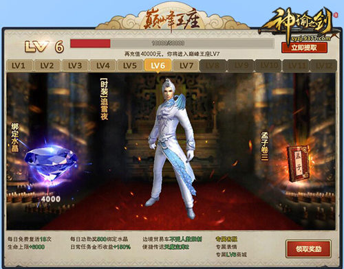 踏马的汉纸你威武雄壮,啊呸,进错片场了…话说,昨天你们有看到那则为了爱犬一拳打懵袋鼠的资讯吗,这估计是除了你的名字“周边”外的犀利趣闻了,感觉这种男生充满魅力啊,简直就是人类中的VIP。说到这,就不得不说9377《神谕之剑》的VIP系统,它同样能让你成为人生赢家哦。 小明看完上面那一段,做了个摊手的姿势模仿了一下薛之谦:“神经病啊,整段垮掉!”嗯,也是,所以咱们直接进入正题不瞎扯了。在9377《神谕之剑》中,VIP系统分为天天向上和巅峰王座两种。VIP享有免费复活、金币收益加成、专属商城等方面的诸多福利和特权,并且在逢年过节和VIP生日更有专属礼包等贴心节日礼包。 9377《神谕之剑》VIP系统:天天向上 9377《神谕之剑》天天向上一共分为“屌丝小兵”、“升官发财”、“当上族长”、“出任国王”、“赢取白富美”和“人生巅峰”等6个阶段。 每个阶段达成的条件、享受的待遇和获得的奖励会随着阶段的上升而越来越高。玩家只要坚持每天登陆9377《神谕之剑》,当登陆天数累计达到激活每个阶段的条件时,就可领取该阶段的奖励哦。激活条件如下: 屌丝小兵:累计登陆1天 升官发财:累计登陆2天,提取10水晶 当上族长:累计登陆7天,提取50水晶 出任国王:累计登陆14天,提取100水晶 赢娶白富美:累计登陆21天,提取200水晶 人生巅峰:累计登陆30天,提取500水晶 9377《神谕之剑》VIP系统:巅峰王座 9377《神谕之剑》巅峰王座一共有LV1~LV11等11个阶段。每个阶段达成的条件、享受的待遇和获得的奖励会随着阶段的上升而越来越高。据悉,9377《神谕之剑》巅峰王座的成员额外享有指定地图便捷传送的特权,并且随着阶段提高,可传送的地图也会逐渐增多。 真国战,召必回!9377《神谕之剑》现已震撼开启,超强打击千人战场万人国战再次呈现!9377《神谕之剑》是一款大型多人在线即时战斗网游,唯美画风再显千年华夏山河。游戏PK不站桩,无锁定战斗系统,浮空、连招超炫打击,四大职业特色鲜明,7+X技能简约多变可强P可偷袭,国战烧脑策略新系统重现三国混战,进入神谕之剑点燃你的狂热战火! 了解更多相关信息,请前往http://news.yzz.cn/ku/syzj/ |