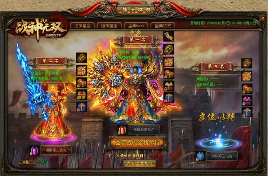 传奇辉煌重现,战天盛世降临!4399《战天》周年新版荣耀开测,新服战区争霸赛全面开战,热血攻沙决战新人王!周年庆典活动豪情开启,百万宝藏等你来夺!更有避魔神兵绝世出鞘,新的屠龙传奇由你来创造! 【战区争霸·热血攻沙再现】 金戈铁马战沙城,战区争霸谁为王?战区争霸赛将40个新服划分为四大战区,勇士以公会为参战单位,再现经典万人攻沙大战!本界争霸赛将持续四个阶段,每一阶段攻沙胜利次数最多的为胜利方,期间按照积分和战力权重进行合服争霸,直至决出最强“新人王”!史诗武器和海量元宝已备好,只待新人王登基领取丰厚大奖! 【战天周年·百万宝藏来袭】 踏入战天周年,五龙卫载誉荣归,百万宝藏震撼来袭!周年庆活动将持续进行到12月17日,活动期间完成每日活跃和每日充值,即能轻松领取豪礼;击杀沙漠土城BOSS,更能兑换战天传奇套装!秘境天龙宝藏也将产出幻羽【彩凤之翼】、坐骑【地狱魔犬】和幻灵【菩提琉璃盏】等极品装备,快来寻宝吧! 【战天盛典·两大豪榜发布】 战天斗地盛典揭幕,【战天豪榜】和【职业战力豪榜】重磅发布!活动期间全服累计消费排名前三十的勇士将登上【战天豪榜】,享有专属幻武和战豪称号等盛典特权,第一名更将独享【战天圣龙刀】和【战天传奇】称号!而三大职业战力最高的玩家,还能在跨服皇城树立传世雕像,获得万人膜拜的荣耀和象征! 【战神无双·避魔神兵出鞘】 战神无双,王者归来,全新避魔战天套装正式解禁!【避魔传奇天兵】【避魔传奇胸甲】等旷世神兵,将带来高数值的属性加成,足够你释放洪荒战力逆天改命!而隐藏无穷魔力的传世法典和时之沙漏,更是你猎杀魔物、守卫沙城的两大法宝!快拿起你的屠魔神兵,让邪魔无所遁形! 新服战区争霸赛火爆开启,4399《战天》周年新版喜迎庆典大狂欢!快加入战天盛典:集结沙城,冲击新人王座;盘龙柱下,再叙兄弟深情;登上豪榜,创造傲世传奇! |
