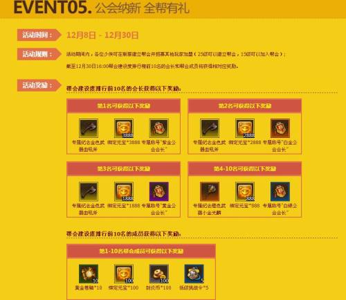 上周,首款竞技塔防端游《梦塔防S》双线新服群雄聚义堂火爆开启,城镇人头攒动、摩肩接踵,新服狂欢夜更是迎来了盛宴的高潮!但是,你们的奖励都确定领齐了吗?这一波不领你就亏,《梦塔防S》福利超级盘点~ 礼包一个都别落! 《梦塔防S》新服群雄聚义堂的助力活动已经结束,每个新服的玩家均可在活动页面登录并领取银两、底座、喇叭、会员卡和坐骑等奖励! 一共3个记得每个都点点确认自己都没落。 此外,《梦塔防S》注册页上还有礼包可以领,里面也有不少好东西,这个礼包不限大区不限等级谁都可以拿,反正是免费的这个不拿就亏了!对了,这个礼包只有电魂账号可以领取,注意一下哦~~ 签到奖励大升级 所有新入驻《梦塔防S》的玩家将能在12月8日开服后至12月21日两周内,享受到首周签到奖励全面升级福利,在原有签到奖励的基础上新增了大量奖励道具,绑定元宝、封炎币、武将技能、精灵、装备等等你所需要的都能在连续签到后免费领取哦~ 冲刺新服排行榜 《梦塔防S》新服群雄聚义堂开启后,所有新服玩家都能够参与战斗力排行榜和封炎积分排行榜的角逐冲刺。1月1日20:00游戏系统会对各位少侠进行排行统计,并根据名次自动发放奖励。除了系统自带奖励外,本活动还将对新服战斗力和封炎积分排行榜前10名的玩家,分别额外赠送对应的“新区关卡精英”与“新区封炎精英”奖励1份。翅膀、坐骑、底座、称号、大量绑定元宝和封炎币就等你来冲! 帮会纳新 全帮有礼 拉帮结派拿好礼!活动期间,玩家可在《梦塔防S 》新服建立帮会并招募其他玩家加盟。截至12月30日16:00,帮会建设度排行榜前10名的会长和帮会成员将获得丰厚的奖励。前10名的帮会会长可以获得新服专属纪念金色武器、专属称号、大量的绑定元宝。 了解更多相关信息,请前往http://mtf.yzz.cn/ |