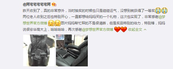 《梦想世界》手游为玩家们实现梦想的活动已进入尾声,玩家们陆续收到了来自《梦想世界》手游项目组邮寄来的奖品,高级按摩椅、iPad、笔记本电脑、手机等等这些玩家当初许下的心愿都得到了实现。不仅如此,在送给玩家礼物时,还贴心的放了一张手写的小卡片更加暖心。收到心愿礼物的玩家都纷纷拍了照片晒起了自己的运气和与梦想世界之间的暖心故事。 【推荐新服】iOS安卓跨平台新服“天长地久” 《梦想世界:神兵觉醒》宣传视频: 玩家@Leeys_的心愿是得到一台iPad,在收到私信说中奖了时还不敢相信自己会有这样的幸运。她表示,《梦想世界》手游是一款很不错的手游画面唯美飘逸,并有九大职业,战斗上手简单,PK活动丰富!现在下班或者有空闲时间玩玩还能愉快交友。也希望游戏红红火火,玩家多多,福利多多,活动不断,后续的游戏越来越好玩!最后感谢多益网络和《梦想世界》手游送出的奖品! 玩家@奔跑中的小馄饨丶是一名梦想世界系列的忠实粉丝,从07年接触梦想世界,就被丰富的玩法和独特的招式武器系统所吸引不能自拔,无奈因为上学没有时间玩。15年5月想怀念一下玩起了梦想世界2,大半年时间玩的也小有成就,但是因为没有太多时间能用电脑进行游戏,无奈退游。16年4月初接触了梦想手游一直在玩。他表示,梦想手游不仅吸收了梦1梦2的优点而且还满足了像他这样没太多时间用电脑的人群,随时随地都可以玩耍。梦想是他童年的美好回忆,多益做游戏的公平快乐游戏理念也是广大玩家一致认可的。真心希望多益越做越好。 《梦想世界》手游的礼物不仅是对玩家们物质上的奖励,更是精神上的奖励。好多玩家们在许下心愿的时候也许并没有在意,当工作人员通知其获奖时才意识到原来梦想真的会实现呀。所以,梦想是要有的,并且真的会实现。圣诞临近,《梦想世界》手游又推出了系列好玩有趣的圣诞活动,也许会突然出现圣诞老人也说不定哟! 了解更多相关信息,请前往http://mx.yzz.cn/ |