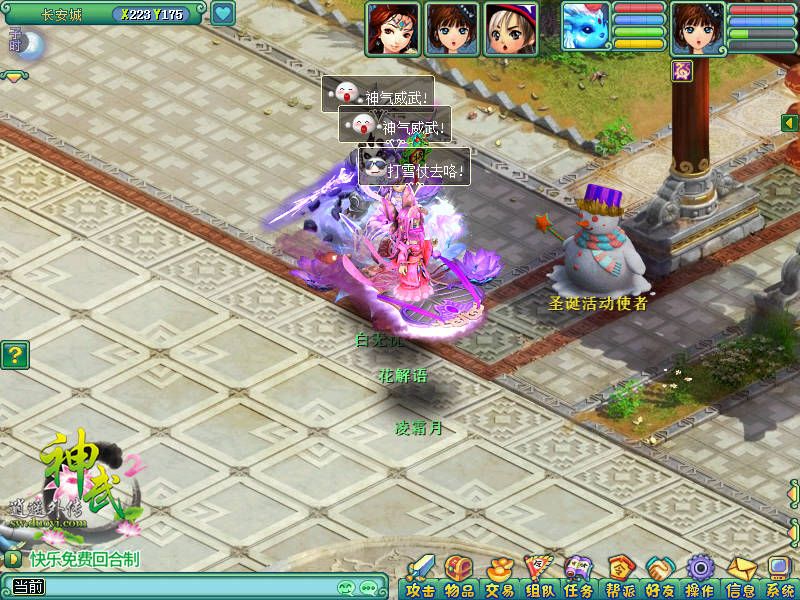《神武2》双旦活动冰雪预告!圣诞欢乐打雪仗,烟花倒数迎新年。双旦六大活动齐狂欢,一起到《神武2》快乐跨年!《神武2》的双旦活动究竟有什么内容呢,让我们赶快一起一睹为快。 新服推荐:“千奇百变”、“青嵩岁月” 双旦雪仗大狂欢 夺宝奇兵齐闯关 《神武2》圣诞和元旦期间有两个活动是持续进行的。2016年12月23日至2017年1月6日,雪仗狂欢夜和夺宝奇兵持续在线,一起陪你欢乐跨年。雪仗狂欢夜,玩家将变身可爱萌童,和其他玩家组队欢乐打雪仗!夺宝奇兵,玩家组队一起挑战闯关,答题抽宝箱,拼图打地鼠,畅玩各种小游戏! 圣诞温情献祝福 全服一起堆雪人 《神武2》圣诞活动,圣诞雪人节和圣诞祝福将于12月23日开启。圣诞雪人节,在野外总能看见可爱的小雪人,拾取小雪人获得的材料上交到活动使者,积攒到一定程度,就会堆出一个大雪人!圣诞老人就会在野外撒下圣诞祝福!在最有爱的帮派里,自然也不缺圣诞气氛。帮派里挂满礼物的的圣诞树下,你将给哪个好友献上你的圣诞祝福呢? 元旦倒数迎新年 福娃任务燃焰火 《神武2》元旦活动即将来袭,你将用什么方式迎接新年呢?12月31日晚,《神武2》将举行倒数活动,长安城外、大唐境外,玩家们将一起点燃烟花,在灿烂的焰火中共迎2017。1月1日至1月6日期间,玩家可以通过完成福娃任务获得焰火材料,合成烟火之后,燃放不同的焰火会得到不同的奖励哦。另外,如果是和好友一起协力燃放,将获得更丰富的奖励! 《神武2》双旦活动即将开启,祝福和奖励一起献给你。双旦之前,更燃爆的是12月20日将在广州举行《神武2》全品牌代言人发布会,许嵩将亲临现场与大家亲述代言故事! 了解更多相关信息,请前往http://sw.yzz.cn/ |