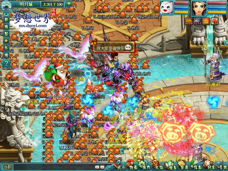 《梦想世界》跨年庆典即将开启,一路有梦与你相伴!据悉,在本次《梦想世界》本次跨年庆典中,圣诞活动将率先开启。快来和小编一起看看《梦想世界》中的圣诞节将会带给玩家们什么样的精彩吧!同时,《梦想世界》多益十周年祝福征集活动现已正式开启啦,更有机会获得《梦想世界》周边公仔! 圣诞总动员 寻找麋鹿 圣诞节之际,圣诞老人也来到了梦想大陆,但是他意外地丢失了5只小麋鹿。12月24日至12月30日,等级不小于30级的玩家可以在明月城的圣诞老人(343,226)处领取任务,组成不小于4人的队伍按提示依次寻回小麋鹿,他就又可以去给梦想大陆上的侠客送礼物啦!每天完成任务后有可能获得圣诞袜,上交到圣诞树处有几率获得烟花奖励,还有机会获得特殊称谓! 圣诞大作战 阵营作战 永绿的圣诞树源自极北的冰雪之地,它的顶端挂着许多圣诞礼物。12月24日至12月27日,等级不小于30级的玩家可以到到明月城雪原狼人(316,153)处选择加入狼人阵营,也可以到明月城(234,196)处的猎魔人选择加入猎魔人阵营进行幻变。幻变后玩家能获得相应技能,战胜对方阵营而获取积分。还有机会单人挑战阵营首领,赢取丰厚积分!完成后还能使用积分兑换圣诞树上的丰厚礼物! 圣诞巡游 热闹非凡 热闹的圣诞节怎么能少了活跃气氛的圣诞巡游呢!12月24日至12月30日,每天的11:30、13:30、19:30、21:30,明月城都将准时开启巡游庆祝活动,圣诞老人会满载着礼物,带着他的小伙伴开始在梦想大陆巡游,除了精彩的表演之外,巡游队伍还会沿途散发礼物袋,玩家捡起礼品并开启后就可获得超值的奖励! 更多活动 乐趣横生 除以上活动之外,《梦想世界》在圣诞节之际还为大家准备了充满节日气氛的圣诞节专属队标、人物角色新增的圣诞主题头像部件、限量版“白金之恋”绚丽玫瑰与烟花,还有仙兽小天马与神兽雷吉斯的限时拍卖活动!想必到时梦想大陆必将充满浓浓的圣诞气氛! 了解更多相关信息,请前往http://mx.yzz.cn/ |