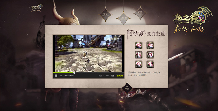 12月22日,《龙之谷》新版本燃战·觉醒魅惑登场!这次谷迷们不仅迎来了舞娘的觉醒,阿依夏变身套装也终于有机会能够集齐了!在收集了项链、双武器、翅膀、印花、尾巴六件之后,谷迷们可以化身为阿依夏,在圣诞节的温暖气氛里,感受之前未曾体会过的感动和幸福! 观看阿依夏变身 阿依夏变身套!掀起巨龙狂舞 本次随着新版本推出的阿依夏双武器,具有非常闪耀的外观和很棒的套装属性,本文将从外观,属性以及特殊技能三方面对阿依夏变身套进行介绍,希望谷迷们能够从多方面的了解到变身套的独特魅力! 闪耀外观,刚与柔的完美结合 阿依夏双武器的外观,也与先前推出的翅膀,尾巴,印花,项链一样,闪耀着璀璨的金光。吸引眼球却又不会显得突兀的金色,与周身闪耀着的光芒相得益彰。谷迷们不用担心衣服和六件套的搭配问题,精巧的外形和非凡的色彩,足以满足你的所有风格要求。 龙力注入,追求最强力量 身为沙龙,阿依夏虽然具有着柔弱的外表,却有着足以摧毁一切的力量!在装备了沙龙六件套之后,谷迷们将获得强大的套装力量,面板及属性上的提升可以帮助你们在战斗中更加得心应手。变身后的新技能也很出色,不管是强力突进还是狂沙龙卷,阿依夏的变身技能都能为谷迷们带来更畅快的战斗体验。 骑士王与沙龙,最凄美的遇见 说起阿依夏,就不得不提到另外一个人---骑士王卡西乌斯。他与阿依夏的旷世之恋让所有谷迷动容。当龙与人类产生了爱情,身份的不同注定了他们最终的悲惨结局。在卡西乌斯手刃掉沙龙之后,这世上便不再有阿依夏,那个倔强而美丽的女子,最终还是与漫天黄沙一起,埋葬了自己与爱情。谷迷们在变身后不仅可以在战斗中使用变身技能,还能在城镇内发动特殊技能,召唤骑士王一起,背靠背欣赏阿尔特里亚大陆的风景。 重要之人,成长中的小国王 大人世界的感情有些沉重,有些无奈。那么小孩子眼中的世界是怎样的呢?谷迷们的好朋友小国王卡西乌斯,在本次的新版本中拥有了自己的角色歌。做为骑士王卡西乌斯的后代,小国王在战火中的成长每个人都有目共睹。本次的角色歌不同以往,清新可爱的画风和感人温馨的情节一定会得到所有谷迷的喜爱!还没有欣赏过的你可千万不要错过啦! 观看角色歌《龙城堡与书》: 也许某天我还能够触摸到你光洁的额头,注视你那双倔强而美丽的眼睛。《龙之谷》阿依夏变身套,奏响世间最凄美华丽的乐章!最大的幸福,莫过于和你简单的背对背而坐,安静的感受彼此的温度了吧。化身为阿依夏,将永恒的爱意长留心中! 《龙之谷》燃战·觉醒新版本热血来袭! 觉醒舞娘极致魅惑!噩梦关卡勇士逆袭! 大陆探险全新旅程!圣诞活动美景捕捉! 全城装扮欢庆双旦!奇幻银河圣诞时装! 舞娘觉醒专属战衣!绝美阿依夏变身套! 圣诞三件套闪耀星河!沙龙精灵再续前缘! 心动兔宠激萌伙伴!人宠新衣华丽童风! 小王子PV感动常在!系列漫画引燃战场! 了解更多相关信息,请前往http://dn.yzz.cn/ |