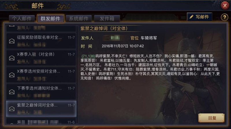 12月27日,2016网易游戏热爱者年度盛典如期拉开帷幕,作为旗下知名游戏IP,《率土之滨》通过两封玩家邮件背后的故事,展示了全自由沙盘战略手游的真实性、自由性,同时也透露了游戏未来的更新方向。 不输真实战争的才智谋略,历史由玩家创造 在《率土之滨》的世界中,为了争夺225万格土地,玩家间的奇谋诡策、明争暗斗随时都在上演。在这些谋略之中,“邮件”成了最为重要的渠道。古有蒋干盗书,今有玩家传书。一切杀机,尽藏于此! 在年度盛典上,《率土之滨》展示了两封邮件,一封看似谋求友好发展,一封是同盟管理发出的开战檄文。友好发展邮件的背后是让对手放松警惕,同时在对方身边安插内应,以其土地作为跳板直捣黄龙,一夜之间直接摧毁敌方盟主!开战檄文乍看起来像是悼文,实则是提前宣告对手覆灭的霸气。 战争中,谋略的作用不言而喻。历史的车轮在玩家的自身的行为下悄然转向,随着一封封邮件的发出战争格局也在发生这变化,这就是《率土之滨》想要传达的沙盘世界的独特自由理念。 现在,不妨让我们一起去看看,过去一年里由玩家创造的历史。 乱世博弈勇者胜,群体战略碰撞更精彩 近日,《率土之滨》上线全新国策版本,这也是SLG手游中第一次赋予玩家战略层面的对抗选项,这让玩家们在游戏中,更能体验到真实沙盘战争带来的种种乐趣——兵不厌诈、远交近攻,玩家自身的谋略在这里被无限放大。 沙盘是体现游戏自由度的基础,群体战略博弈则是其核心内容,《率土之滨》独创的“国策”系统玩法让玩家从个人对抗提高到国家战略层面。国策的“师辎不绝”可以在短时间内为所有国家成员提供大量战略物资;“坚壁清野”则可提升国土防御;“强袭”则让所有成员可闪电般突袭敌人。正所谓运筹帷幄,决胜千里,未来还会加入更多群体战略内容,让这份对抗变得更加精彩。 2017年打造更多样、更具带入感的沙盘世界 目前游戏已经完成地图场景高清重置,四季场景的开发,冬季版已经在12月加入游戏,其他季节版本将再后续跟随现实季节陆续推出。此外,更多样的沙盘表现,以及其他拟真环境因素对于玩家游戏行为的影响,更加丰富和有代入感的游戏背景设定,这些都将是2017年《率土之滨》新内容的重头戏。 关于《率土之滨》: 普天之下,莫非王土;率土之滨,莫非王臣。 统万军而吞天下!《率土之滨》——网易全自由沙盘战略手游,开启沙盘战略元年。全新“征服赛季”盛大开启!吾王招募名将、发展军政,结交同盟,体验前所未有的万人同图国战。权力的游戏没有剧本,是三国演义、七雄对决,甚至一统天下,全由吾王主宰! 海量福利,请关注《率土之滨》官方微信/易信:stzb163 官方QQ群:490095673 官方微博:@网易率土之滨 官方网站:http://stzb.163.com/ 了解更多相关信息,请前往http://www.yzz.cn/stzb/ |