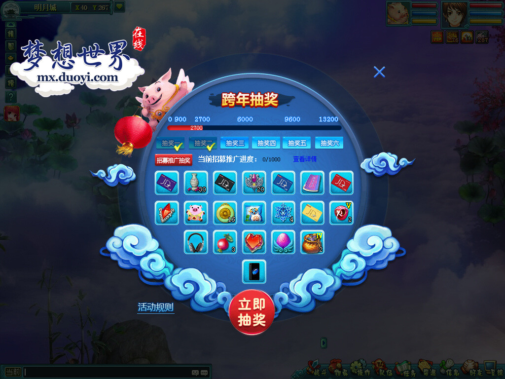 《梦想世界》“一路有梦”跨年庆典开启,新服“前尘旧梦”正式开启,欢乐时光,有你相伴!全民福利大放送,跨年抽奖正式开始,iPhone7、索尼h.ear系列耳机、1000元京东卡大放送,还有限量周边、神兽、仙兽等你来拿,一年一次的神工符、神仙果不可错过,快随小编一起来参与吧! 《梦想世界》新服推荐:前尘旧梦、横扫六合 跨年抽奖 iPhone7放肆送 来自东方神秘国度的送财童子在此佳节远游至梦想大陆,并带来了来自遥远世界的神奇礼品。12月30日 - 2月28日,新玩家满20级,老玩家登录游戏即可抽奖,每人有6次抽奖机会,通过游戏活动累积幸运值开启,抽奖次数越多,奖励价值越丰厚。成功推广招募玩家,还能额外获得1次高级抽奖机会!有机会获得iPhone7、索尼MDR-1A耳机、千元京东卡、仙兽、神兽、限量游戏周边等超值大礼喔! 限量周边 活动奇遇 小飞猪也为梦想大陆带来了好礼,让众位侠客们的跨年活动更加丰富多彩。12月24日-2月22日,侠客们参与圣诞、元旦、寒假及春节活动,就有机会获得小飞猪公仔、企鹅抱枕等限量周边,超值大奖等你来拿! 新春礼包 不容错过 除上述之外,12月29日-3月2日,好礼贺新年,每位玩家皆可领取一次鸡年新春大礼包,包括兽魂结晶、世界荣誉勋章等丰厚奖励。除此之外,《梦想世界》还为大家准备了金鸡报喜礼包与金鸡迎春礼包,每位玩家都可选择其中一个打开,将有神工符、特殊兽决包、神仙果等超值大礼等着你喔! 关于《梦想世界》 《梦想世界》是多益网络推出的高端回合战斗网游,拥有富有策略的战斗系统,11个流派421种招式,相生相克变幻无穷。独创电影式副本,带你穿梭古代未来,结交关羽,飞上太空战机械之王,探索超乎想象力的奇幻世界。随心打造个性角色,华丽翅膀、拉风坐骑、多彩光环、超萌小精灵等自由搭配。实时语音畅聊,结交游戏好友,遇上唯美爱情,一起闯荡武侠江湖。 了解更多相关信息,请前往http://mx.yzz.cn/ |