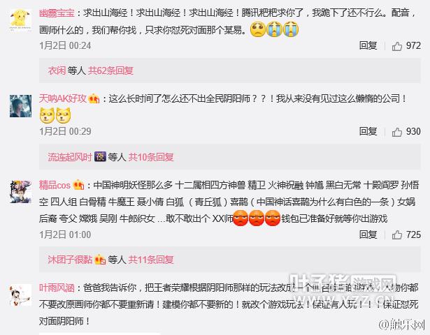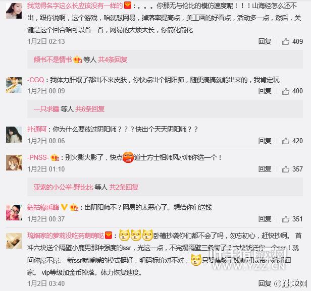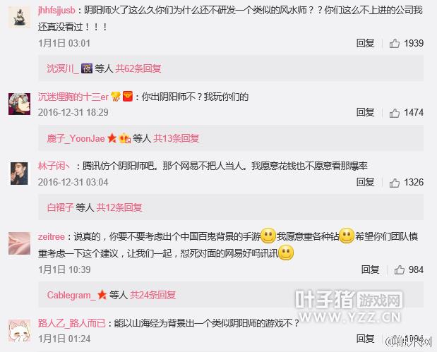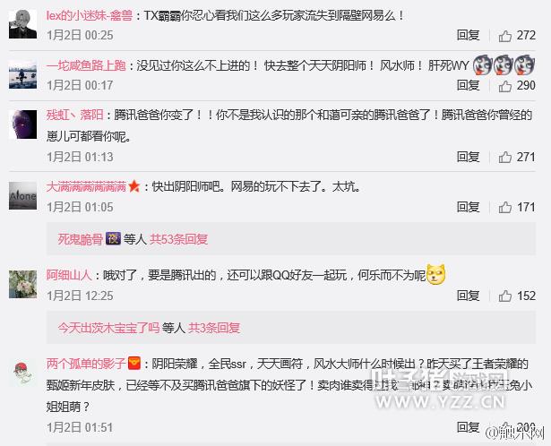 最近《阴阳师》新出的姑获鸟皮肤活动由于爆率太低,引起玩家怨声载道。不少玩家跑到@腾讯游戏 微博下方评论,希望腾讯出一款类似的游戏。有人批评道:阴阳师都这么火了,腾讯还不抄,从没见过这么懒惰的公司。 事件起因:姑获鸟新皮肤可以在日常副本和漫展两个途径获取,引发了全民在线肝副本的狂潮,而频道中一直提示的xxx获得神眷,奖励新皮肤的消息刺痛了玩家们的神经~(目前已经延长活动时间,并不再在世界频道进行公告) 下面来看看玩家跑去微博的评论: 事实上如果腾讯出了阴阳师山寨版,真能如玩家所言的这样么? PS:目前苹果商店还真有个xx师上线,不过内容完全和阴阳师天壤之别~而且还卖1块钱~据说群里1星差评后就删除了。 了解更多相关信息,请前往http://www.yzz.cn/sy/yys/ |