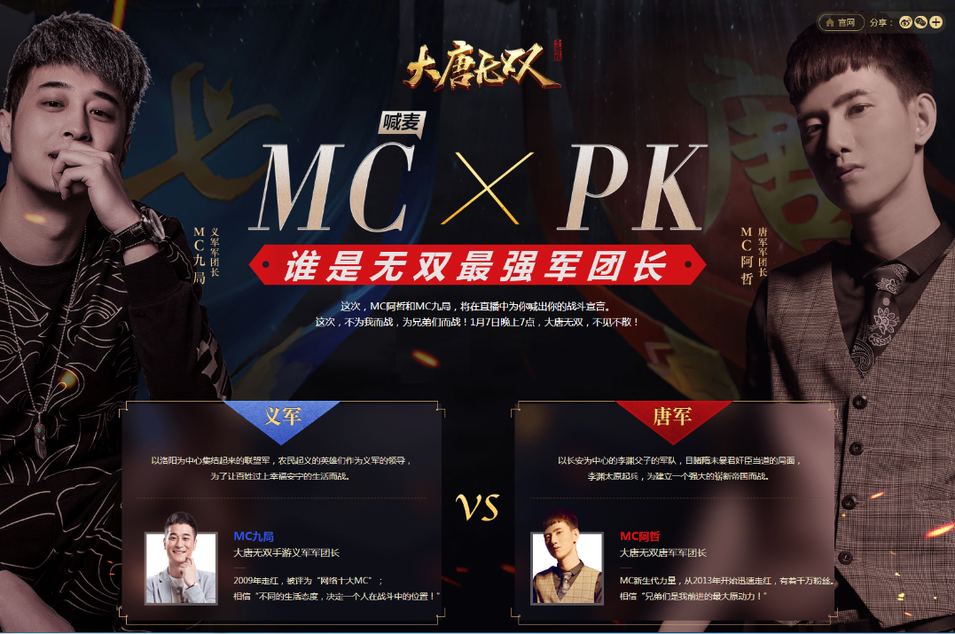 网易七年战斗旗舰《大唐无双》手游今日将正式开启全平台公测战幕,一场指尖之上的感官革命将全面席卷而来。《大唐无双》手游在战斗动作手游中独辟蹊径,以全PK体系的核心特色,历时近500个日夜密闭开发,将大唐无双系列端游完美移植,特色战斗体系全面呈现在好战玩家面前。 【首充即送永久坐骑 九重福利公测大礼】 为庆祝手游全平台公测,《大唐无双》手游多重福利将会悉数登场:即日起,首充元宝即可获赠精美坐骑坐骑:首充任意金额即获得【飘雪疾风狮】,登陆七天自动升级会永久坐骑,让每位玩家都可以在无双世界里开怀驰骋! 另外,坚持每日签到奖励、开服前七天,完成每日特殊任务、冲级、绑定手机、参与规则答题、每周完成分享任务、关注官方微信公众号都可获得丰厚大礼。 阿哲VS九局最强battle来袭 为了助阵《大唐无双》手游公测,MC阿哲与MC九局即将与1月7日在线上进行一场世纪battle大战,玩家可以通过官方活动页面、两位MC的直播间观看这场世纪对决。为此两大MC还通过微博召集粉丝参战,粉丝可以在活动专题页面(http://dt.163.com/2017/zhibo/)投票,支持你喜欢的MC。 两大MC会在本次直播中通过喊麦battle、《大唐无双》手游物资战场喊麦指挥PK来争夺“无双最强军团”称号。1月7日,究竟是哲家军战斗力强还是九家人团结犀利,让我们期待他们的巅峰对决! 图(四) 【史诗阵营对决 唐义军“一战七年”】 作为网易战斗品牌,《大唐无双》手游拥有多种PVP玩法,进入游戏后,好战玩家先划分为唐义军两大阵营,天生注定就要战斗到底战个痛快。无论是帮派PVP还是个人PVP玩法,《大唐无双》手游中所有玩法都是结合阵营来划分,不仅仅是PVP玩法从1V1的单人竞技场、野外小冲突,到5VS5竞技场、15VS15的巴蜀战场,再到40VS40的物资战场,用多变对抗PK玩法可以让好战玩家在指尖开启各种PVP角逐。 围绕着阵营还有诸多精彩的对抗活动,例如每周的“千军破”活动,完成所有PVP任务击敌数量都计算在内,击败敌对阵营玩家时会增加任务进度,通过“千军破”可以获得五行纹兑换令和瑶光等升级战力的必备道具。 此外还有完成任务获得大量经验奖励,顺带击败敌对玩家再得声望奖励的剿灭外寇活动、以及玩家齐心协力围剿BOSS的隋军余党玩法、顶着PVP状态在落雪岭采集棉花的采集军棉活动等等。 【帮会系统:建帮立业“战个痛快”】 地城争夺战·谁能占地为王? 《大唐无双》手游的帮派系统是志同道合的好战玩家聚集地,更是众多精彩战斗玩法的承载,例如帮派地城争夺战的战斗,就是用最简单的“看哪一方杀死对方帮派人数最多就获胜”办法激励好战玩家们去夺取战功奖励,而获胜的帮会就将占领这座地城,获得大量帮派资金作为奖励。 这地城争夺战可不是简单的PK抢人头占地盘游戏,在看似简单的胜利规则下,有着非常考究实力和配合的挑战。首先,地城争夺战是以帮派为单位进入战场,并且参战的人数每个帮派最多是20人,所以在争夺战中所遇上的每一个对手都是精锐中的精锐,生死可是一线之隔;同时每一位参战成员有七次复活次数限制,如果死亡次数达到七次就会被立刻移出战场,并且胜出的条件是在限定的二十分钟以内以击杀队伍人数获取积分为目标,积分最高者获得最终胜利。 可以说地城争夺战不仅仅是考验帮派队伍内的团队配合,职业配置,帮主临场指挥水平,参战成员的个人实力也极为重要,毕竟在复活次数限制下,任何一个的短板失误都可能造成整个战局的崩盘。 【武将系统:让历史名将做小弟跟班】 《大唐无双》手游的武将系统是充分吸收端游的精华玩法,并且沿袭端游的基础上更为精简,培养的方式和成本也更简易,尤其在今日全平台公测中,还将有武将求贤玩法,玩家可以招募制定武将,不再是“一将难求”。好战玩家随时随地调教名将,将诸如军神“李靖”,天下第一条好汉“李元霸”、天宝大将军“宇文成都”等众多隋唐时期名震天下的群雄名将带入好战玩家麾下。 当玩家在竞技场、悬赏任务等场景单独战斗时,这些武将会出现在你身边,施展各自的战斗技能、被动技能、辅助技能、名将技等武将技能为主人征战沙场。不同武将的技能能够通过玩家对主副护法的选择进行自由组合,发挥出不同战斗效果。同时也大大满足了好战玩家们的名人收集欲望。 【寄存系统:活动任务做存折 隔天还有翻倍“利息”拿】 传统的MMO游戏为什么玩到后面越是心累,其实原因就在于上班式的任务和活动,想想睡醒就想起今天要做N个任务,整个人都不好了。 在今日《大唐无双》手游全平台公测中,玩家将体验到“减负”福利的寄存系统,除了离线经验之外,没有做或者来不及做完的任务甚至可以进行寄存,第二天开始的经验还是翻倍的:第二天1.9倍、第三天更高达2.8倍。好战玩家们就无需每日还要劳神费力的去计算分配游戏时间,只要开启寄存系统,让任务和活动先养肥了再杀,这期间尽情的去享受战场厮杀的刺激与乐趣。 重回黄金战斗年代,享受最为纯粹的战斗,今日,《大唐无双》手游全平台公测战幕点燃,无论你身处何地,轻滑动指尖,同5000万好战玩家共享战到痛快的热血与激情。 关于《大唐无双》手游 作为系出名门的品牌力作,2.5DMMO《大唐无双》手游沿袭了端游的热血武侠画风与 “以战养战”精髓玩法,小到1V1竞技场、野外小冲突,大到帮会战、阵