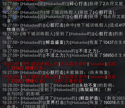 随着《魔兽世界》7.1.5版本来临,版本热门坦克血DK再次得到了加强。本来身板就很硬的血DK在这次版本BUFF的加成下变得更加坚不可摧,现在白骨之盾堪称BUG级别的存在。接下来带来的是它在各种战斗中的实际表现,看完你就会明白骨盾现在有多强大。 在一个多月之前的ptr23038版本里,有一个关于骨盾的小改动:骨盾现在只会被近战攻击消耗。下面是细节测试 注:下面所有的骨盾消失都是手工点掉的 环境伤害:不减伤,不消耗骨盾 苏拉码左下绿池子 Dot伤害:减伤,不消耗骨盾 苏拉码左下末日守卫 Aoe伤害:减伤,不消耗骨盾 苏拉玛左下地狱火 远程物理伤害:减伤,不消耗骨盾 pvp日常 远程魔法伤害:减伤,不消耗骨盾 某pvp日常 近战物理技能:减伤,不消耗骨盾 苏拉码左下某小怪 骨盾现在表现为减伤而不是治疗,减伤部分计入“5秒总承伤”从而影响灵打回血。即有无骨盾,灵打回血相同 脱光装备,只留武器,打满10层骨盾之后去找老家坦克木桩。 0全能,血量不足百万。 总承受伤害=338936+145506+297422+270023+79317=1131204 灵打回血=190016+79318=269334 反推总承伤269334/20%=1346670 两者比例:1131204/1346670=0.84 满足骨盾16%减伤。 了解更多相关信息,请前往http://wow.yzz.cn/ |