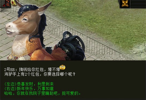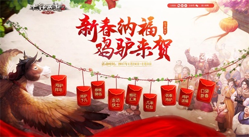 新年伊始,鸡驴送福!《大话西游2经典版》春节活动“新春纳福·鸡驴来贺”火热来袭,1月24日至2月3日,九大玩法与你一起喜迎新春,海量福利大放送,珍稀神兽、神兵、一阶仙器、终极修炼丹、龙涎丸宝宝、龙之骨等丰厚奖励等你赢取!此外,新服【如意令】今日中午12点火热开启,虚席待君至! 鸡驴拜年 辞旧迎新 拜年是中国民间的传统习俗,是人们辞旧迎新的一种方式。用拜年鸡驴给你的好友拜年,说不定能拿到不菲的拜年红包。活动期间,诸位玩家可前往长安的王小睿处购买节日道具“拜年鸡驴”,右键点击道具,选择想要发送红包的好友,输入红包金额及祝福语并发送,拜年鸡驴就会出现在该好友的庭院里。若你的庭院出现了拜年鸡驴,给他拜个早年,即有几率获得金钱或物品奖励。 鸡驴下凡 问答博奖 想找到鸡驴大神的踪影,可不是件容易事。试着找到鸡驴,并答对它的提问,可以获得丰厚的奖励。活动期间,每30分钟会在长寿村、宝象国、东海渔村中的任一场景出现一个鸡驴大神。诸位玩家可组队找到鸡驴大神,并回答其问题,若队伍中有超过3人答对,则可获得以一搏五的机会,有幸者可收获5份大奖! 恭候降临 鲜花采集 百姓们正筹备着鲜花,期待鸡驴大神降临,快叫上小伙伴们一起去采鲜花吧!活动期间,诸位玩家可组队前往长安东、大唐境内、大唐边境、长寿村外找到桃花仙、花妖、水灵仙,与其战斗,采集供奉鲜花。战斗胜利后可获得丰厚奖励,前30次可获双倍经验,1-10次、19-30次均有几率获得物品奖励,第11-18次可获金钱或师贡奖励。 走访侠士 技巧学习 想要成功讨好鸡驴大神的欢心,可不是个简单事。不妨给供奉过鸡驴的各位侠士拜年,向他们请教下供奉鸡驴的要领。活动期间,诸位玩家可组队找到供奉过鸡驴的4名隐姓埋名的侠士,他们分别是长寿村(45,29)的朱氏、长寿村(122,28)的刘氏、长安城东(244,103)的赵氏、长安城东(144,240)的姜氏,并与其战斗,学习供奉技巧,赢取丰厚奖励! 烟花汇演 经验获取 喜贺新春,唐王下令在皇宫门前举行烟花汇演,以展现国力强盛,祝国泰民安,也表达对鸡驴下凡的欢迎。活动期间,诸位玩家可单人前往皇宫(98,26)处找何银花进入烟花汇演现场,欣赏烟花。每一分钟可获得一次经验,每天可获得360次经验。 几率红包 全民开抢 这个新春不孤单,大话与你一起守岁!抢红包,过大年,1银两也是爱!除夕(1月27日)、初一(1月28日)晚上19:30、21:00、22:30将各有一大波红包雨来袭,全民开抢,手快有手慢没!让大话与你一起守岁,迎接鸡年!此外,活动期间,诸位玩家可前往王小睿处购买几率红包,向世界,帮派,好友发送红包,送上新春祝福! 供奉鸡驴 几率求福 鸡驴下凡,和世人还玩起了游戏。据说在祭驴大典上获得鸡驴取用供奉最多的侠士,可获得大大的福气,说不定还会被几率哦!活动期间,诸位玩家可组队前往长安(336,177)处找到小仙童,进入场地供奉鸡驴,一天可参与两次。 游戏中,使用鼠标点击高亮方格进行移动,使用ALT+A向鸡驴大神献鲜花,使用ALT+S键放粮食。鸡驴吃粮食时会停止移动,当鸡驴大神被献够一定数量的鲜花后,会满意地离开。若限定时间内没有令鸡驴满意,或鲜花已经用完,则游戏失败。行动中需注意躲避鲜花和鸡驴的鸡蛋,被扔中会眩晕数秒,无法移动无法献花。 鸡驴送福 庭院挖宝 有福啦有福啦,鸡驴大神每天都会挑选一部分幸运玩家,特赐大奖!春节期间,鸡驴大神每天都会选择一部分幸运玩家,在其庭院买下巨宝,无暇参与活动的玩家有空也记得上来看看,也许你的庭院有惊喜。巨宝埋藏时间越久,好运值越高,越容易获得大奖,可挖截止日期为2017年2月28日。 《大话西游2》新春送福季火热开启,三石哥丁磊陪你一起过个大话年,更多福利即将揭晓!春节活动“新春纳福·鸡驴来贺”即将来袭,1月24日至2月3日,九大玩法与你一起喜迎新春,海量福利大放送! 了解更多相关信息,请前往http://xy2.yzz.cn/ |