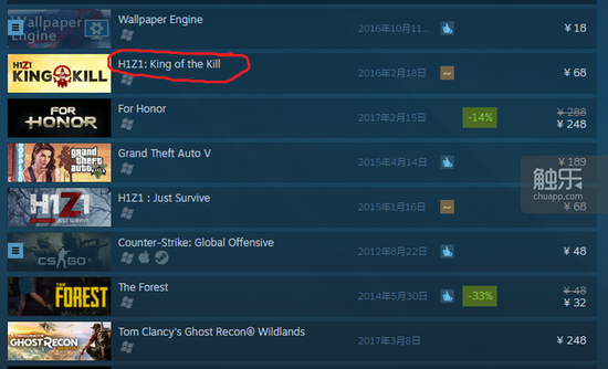 一炮而红!《H1Z1》成Steam国区热销榜第一