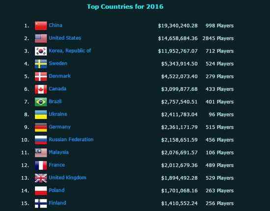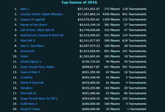 2016电竞奖金:DOTA2最高 韩选手拿LOL七成