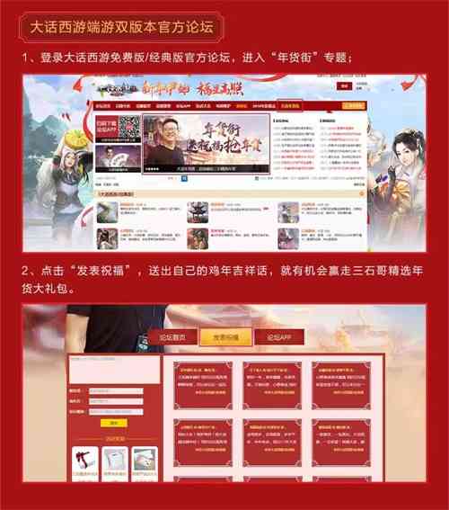 一声祝福,温暖兄弟情! 一份年货,红火大话年! 鸡年新春将至,在此辞旧迎新之际,《大话西游2》携三石哥丁磊、大话兄弟胡歌、CBA七冠王王仕鹏、奥运击剑冠军雷声以及一众来自端手游的玩家,给大家送上新年祝福,一起过个红火大话年!新的一年,让故事更精彩,让情义更暖心,让陪伴更长情! 大话年货街暖心进行中 三石哥喊你领年货 大话年货街活动暖心进行中,三石哥丁磊为大家精心带来了众多优质暖心的年货,在阖家团圆之际,给温暖加多一分喜庆。官网、论坛、微信上,众多福利活动同步开启,精选年货礼包“食”“福”“礼”一应俱全,满载着新一年的祝愿和期盼,陪大家一起过个红火大话年! 网易味央猪肉、小肥羊优惠券、坚果礼包、网易严选礼品卡,海量年货大放送,快来领取首个游戏圈里的“年货专场“礼品,乐享情义大礼! 大话年货街暖心进行中 海量年货免费领取 大话年货街活动在官方微信公众号、官网、官方论坛上同步进行,多种参与方式自由选择,三石哥精选年货福利满满! 方式一:进入大话西游2官方微信公众号,打开“年货街”,进入抽奖页面,点击抽奖,缤纷年货等你领; 方式二:登陆大话西游2官网,进入新春送福季专题,在“大话年货街”活动页面,留下你的祝福,即可参与年货大抽奖; 方式三:登陆大话西游2官方论坛,进入“年货街”专题,在新年祝福墙上写下美好寄语,与万千玩家共享三石哥的年货雨! 《大话西游2》新春送福季火热开启,三石哥丁磊陪你一起过个大话年!春节活动“新春纳福·鸡驴来贺”即将来袭,1月24日至2月3日,九大玩法与你一起喜迎新春,海量福利大放送! 了解更多相关信息,请前往http://xy2.yzz.cn/ |