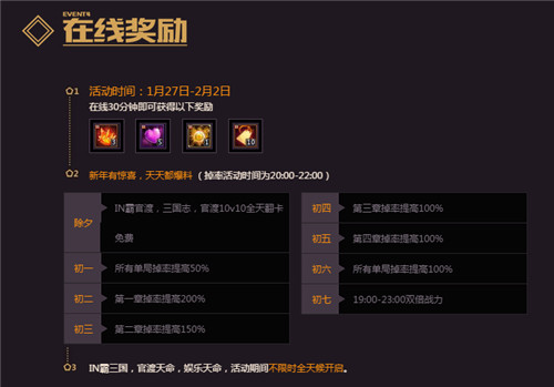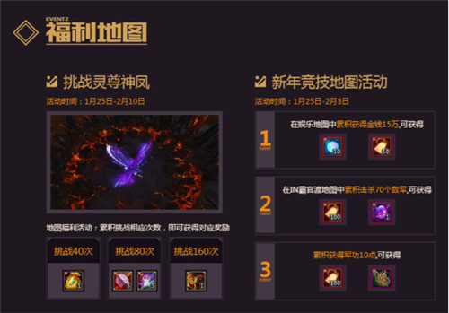 新春来临,金鸡呈祥,《梦三国2》推出“火凤燎原”新春版本。神州大陆将正式步入年关,城镇中到处张灯结彩,神族许愿树现世,神族英雄太史慈更迎来重铸,近战远程两种形态助其立不世之功,重现天将之威。 年关期间,年兽欢喜闹大年,年兽闹春战场复出;福兽入侵城镇,正待仙术师镇压;神秘凤鸟现世,期待与你一决高下!这个春节,《梦三国2》中准备了不少地图等着大家来挑战,希望在过年期间,每一位仙术师都能平安幸福、合家团圆,在梦三国中过一个开心的大年! 新副本·挑战灵尊神凤 在仙术师们的努力下,时空之眼的石魔终于被消灭干净,可随着石魔的离去,时空之眼附近竟出现了一个神秘的金蛋,经糜竺鉴定,这个金蛋中封印着多年前杀害火神的凶手——灵尊神凤,它此次现世,带着极大的怨恨与欲望,快组上队友一起去时空之眼,在它再度现世前将它击败吧! 地图奖励: 温馨提示:使用糜竺金鸡福禄换装进入地图,将会触发惊喜彩蛋哦! 年兽闹春战场 年兽前来闹春,双方英雄战场极力角逐,对年兽造成更多伤害的队伍可以获得更好的奖励。多多利用军策来拖延对方的脚步,可以让己方获得优势。 年兽闹春是一张关卡竞速战场地图,玩家出生在两个不同的区域,通过快速击杀年兽爪牙,获得优势,最终对年兽造成伤害更高的队伍将获得更好的奖励。 在今年开放的年兽闹春战场中,我们加入了鞭炮道具,玩家可以使用鞭炮攻击怪物与敌方玩家!并且由于春节燃放了大量爆竹,现在春节战场也拥有了战争迷雾哦! 另外,加入最后一击判定,对年兽造成最后一击队伍的玩家,可获得额外奖励,当己方夕兽死亡时,会为己方队伍恢复满生命及法力,同时复活点处刷新2个鞭炮! 年兽闹春战场增加年兽之焰道具的掉落,年兽之焰可合成全新宠物——福禄焰焰。 另外,在新春版中,《梦三国2》还新增了趣味道具的玩法。玩家可以通过参与年兽闹春活动、用许愿签在NPC处兑换等途径获得3种不同的趣味道具:滑稽表情、搞笑表情、鞭炮翅膀。 趣味道具可以在房间内对其他玩家使用(可带入城镇,不带入单局),使其他玩家变身为十分有趣的造型,持续10分钟。多次对他人使用或者被他人使用趣味道具,还会获得独特拉风的功勋称号奖励哦! 福兽入侵击退福兽得宝藏 活动开放期间,在城镇随机位置会刷新大量福兽,玩家若找到城镇中的福兽,可选择与其战斗进入“福兽入侵”地图,通关地图可获得大量奖励。 福兽入侵活动开启时间为1月27日-2月2日(年三十至初六)每天12:00点及20:00点开放,每次开放半小时。通关福兽入侵地图后,将有几率获得许愿签、新春趣味礼包、士兵卡、金蛋、神之武器打造书页等奖励! 另外在今年的新春版中更新增了以下功勋—— 换装 1.神鸡报晓:收集糜竺新年换装“金鸡福禄” 2.曹魏双壁:集齐邓艾,钟会 3.访贤纳士:在水岭注中激活的橙色品质及以上换装达到30个,奖励橙色称号“名将如云” 武器 1.2016嘉年华:集齐嘉年华*炸鸡啤酒、嘉年华*红烧锦鲤、嘉年华*圣诞火鸡,奖励紫色称号“2016嘉年华” 2.星陨圣武:水岭注中集齐激活星陨*屠龙刀、星陨*玄天双刃、星陨*混沌戟、星陨*美人离殇、星陨*逆龙爪,奖励暗金称号“星陨圣武” 3.太极阴阳:水岭注中获得激活太极*阴阳剑 4.拘魂夺魄:水岭注中获得激活死皇*拘魂夺魄 5.武器大师:收集橙色及以上品质武器数量达到50个,奖励“橙色,武器大师”称号 6.神兵利器:收集橙色及以上品质武器数量达到100个,奖励“金色,紫电青霜”称号 坐骑 1.我有神兽!:水岭注中获得激活九尾狐仙、轩辕*白龙、紫炎*幽凤、天雷*虎尊、苍穹*神牛、怒火*天狮之一,奖励金色称号“我有神兽!” 2.四圣兽:水岭注中获得激活青龙坐骑、白虎坐骑、朱雀坐骑、玄武坐骑,奖励好感玉50个 3.熊猫家族:水岭注中获得激活熊猫圆圆、熊猫胖胖,奖励金色称号“国宝” 4.胯下有神兽:水岭注中获得激活橙色及以上品质坐骑达到50个 翅膀 1.我是外观党!:水岭注中获得激活橙色及以上品质翅膀80个 2.五行翼:水岭注中激活水*怒涛涌、木*辕木樽、火*熔岩翼、土*鬼门关、金*天圣羽,奖励好感玉50个 宠物 1.饲养员:水岭注中获得激活橙色及以上品质宠物达到50只,奖励拓印空白卷轴*5 2.金牌饲养员:水岭注中激活橙色及以上品质宠物达到100只,奖励金色称号“金牌饲养员” 了解更多相关信息,请前往http://news.yzz.cn/ku/msg2/ |