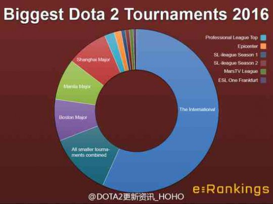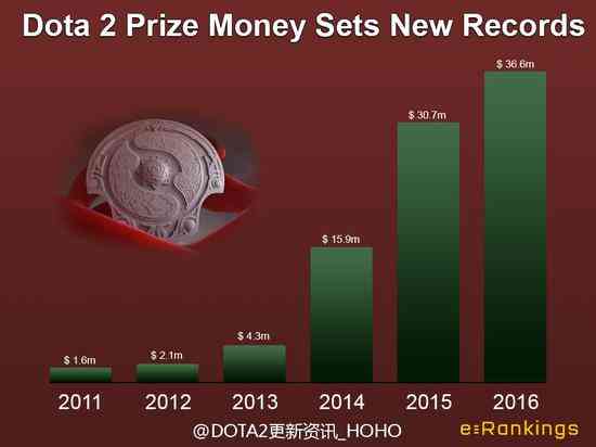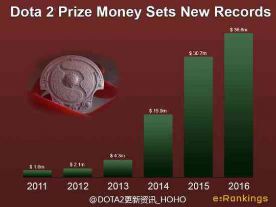近日,统计网站E-RANKING公布数据显示,S2016年DOTA2的赛事总奖金再创新高,一共是3660万美金,比2015年的3000万提高了600万左右。在所有赛事里面,V社的官方赛事奖金还是占了前四名,TI6的奖金为2077万,三大锦标赛的奖金各为300万。 官方赛事以外,排名最高的是中国赛事DPL第二季,奖金为70万美金;第二名是震中杯,奖金50万;第三名为SL i-League StarSeries的2个比赛,奖金都为30万美金。 |