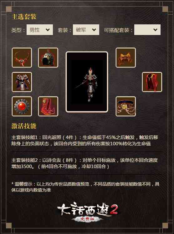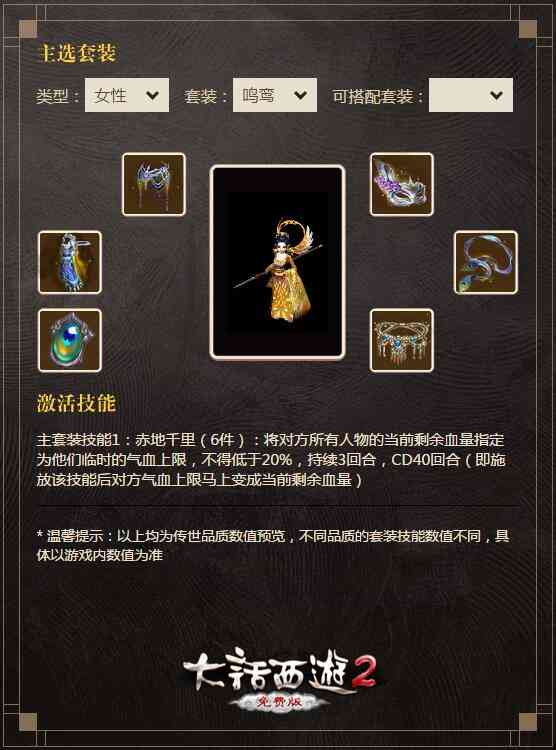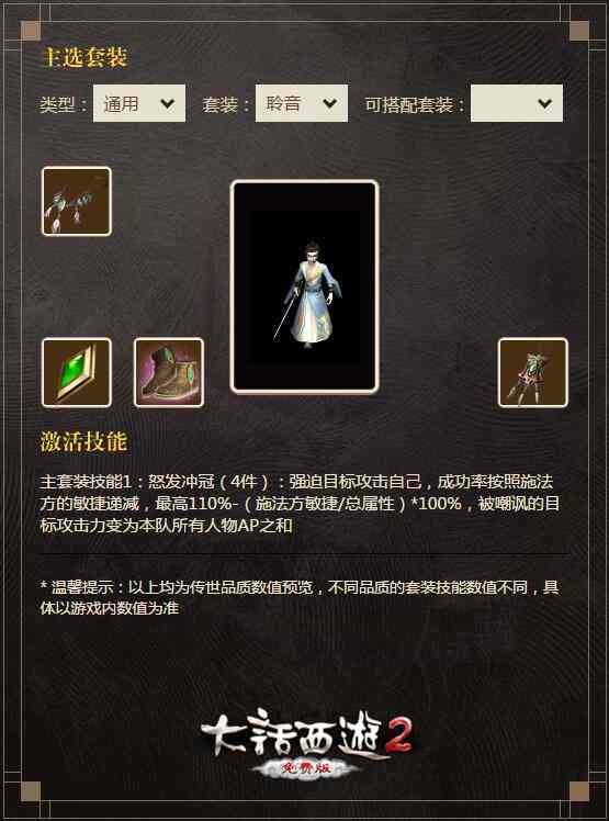仗剑江湖行,伏魔三界间!《大话西游2免费版》2017新春资料片《仗剑伏魔》将于2月16日火热上线,战斗新挑战一触即发,三界风云由你书写!全新套装系统即将登场,39套套装带来炫美特效,引爆战力升级! 闯魔窟赢套装玉符 集套装引战力升级 套装玉符本是天界宝物,自大闹天宫后落入七大圣之手,成为魔王窟镇窟之宝。诸位玩家可前往魔王窟副本挑战七大圣,成功即可获得任意种类的套装玉符,挑战过程中还会随机掉落机缘令牌,可用于兑换机缘宝箱,开启抽奖有几率获得套装玉符。 镶嵌套装玉符的装备将变化为套装部件,每一件套装部件都在原装备基础上增加了2条额外属性,集齐一定件数的同种类套装部件之后,还将获得强大的套装技能。 39套套装火热登场 品质升级获炫美外观 套装共有39套,包括须弥、释厄、聆音、六芒、腾蛇、六合、勾陈等七套通用套装,霄汉、天荒、寒鸦、太皓、洞天、雅声、灭神、破军、容止、断鬼、大觉、羲和、毗卢、寒隐、九曜、燃灯等十六套男性套装,青鸾、灵台、残梦、凤鸣、罗刹、兰心、半夏、于归、惊鸿、国色、莲华、鸣鸾、红泪、重楼、碧落、白骨等十六套女性套装,不同种族、不同流派的角色都可以找到适合自己的套装搭配。 套装品质由低到高共分为把玩、贴身、珍藏、无价、传世5个等级,套装玉符能提供的额外属性及套装技能强度随品质而变化,部分套装达到珍藏品质可获得绚丽套装外观,达到传世品质还可获得独有特效。 《大话西游2经典版》,国风经典,亿万口碑扛鼎之作! 《大话西游2免费版》,网易“大话2”品牌360°延展——绿色免费,轻松赚钱,经典再临!2017新春资料片《仗剑伏魔》来袭,神秘莫测的魔王窟副本,强力玄妙的套装系统,兄弟并肩作战的热血跨服帮战即将登场! 了解更多相关信息,请前往http://dh2.yzz.cn/ |