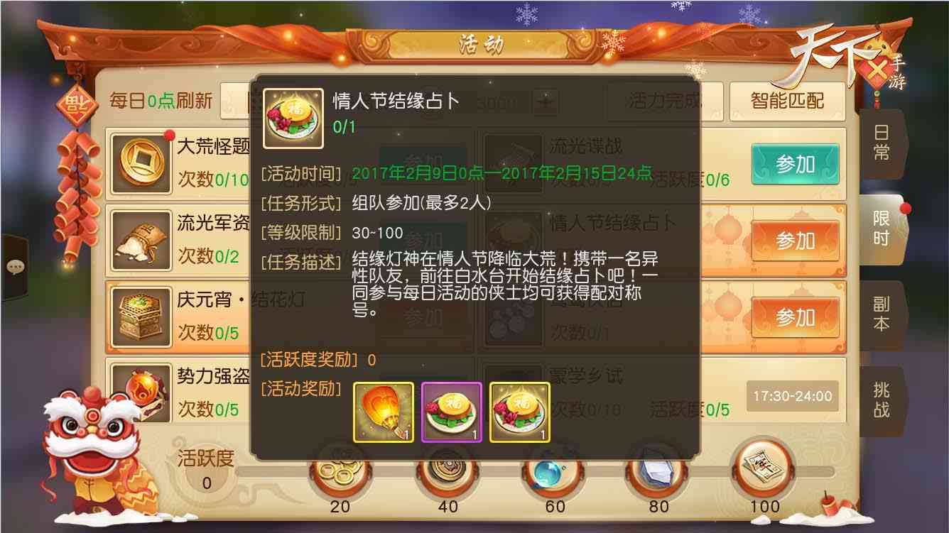 真3D极致画面,无缝大世界,网易顶级品质旗舰《天下》手游现已全平台开启,少年玉玑子吴磊携手全新门派双生女刺客魍魉现已全面来袭,这天下,少年都在玩! 情人节来临,浓情满大荒,携手有缘人开启一场浪漫之旅。与此同时,《天下》手游、《天下3》共谱2017年度嘉年华,2月18日与你相约上海,多重游乐区域玩乐缤纷趣味享不停,还有众多神秘周边大奖等你来拿!2月18日,《天下》手游邀你邂逅全天下的浪漫! 【邂逅上海嘉年华 共诉浓浓天下情】 《天下》手游上海嘉年华将于2月18日在世博创意秀场隆重举行。《天下》手游代言人吴磊作为嘉年华的主视觉,不仅是本次嘉年华的颜值担当,也是六角形游乐区域的“签名墙”担当,以满满的少年力开启整场大荒盛宴。 邂逅是上天注定的相逢,也是一份隽永的情节。《天下》系列上海嘉年华将古风与现代交融,将大荒之美融于饱含匠心的六角娱乐区。在“愿-天下”体验区写下自己的心愿,向大荒征求祝福。“玩-天下”天下手办、玑哥公仔、鸡年玩偶等待着你呼朋唤友,一展抓公仔手艺,“偶-天下”大师现场捏泥人、“品-天下”师傅为你打造私人定制款糖人,“画-天下”水墨丹青区现场绘制折扇......携三两好友畅玩天下,品尽古风与现代交融的快乐。游玩累了,还可前往“纹-天下”体验区贴上门派专属纹身,在拍照区“翼-天下”定格记忆。 “愿-天下” “玩-天下” “品-天下” 翼-天下 画-天下 每体验一种游乐项目都能获得一个邮戳,集齐一定数量邮戳就能来到我们的“大荒仓库”兑换你的心动好礼。 大荒仓库 点一杯舒心饮品,与小伙伴们促膝聊叙大荒二三事,共诉浓浓天下情,岂不惬意?更可以欣赏精彩无比的《天下》手游竞技赛邀请赛。如火如荼的PVP线下赛事将在舞台区进行,并有三张LED屏幕直播,届时玩家可入座观众席见证高玩队伍在此逐鹿! 【占卜姻缘大胆秀 冰心充电宝等你拿】 少侠是否与恋人或者有缘人占卜过彼此的缘分呢?是前世注定的浪漫还是今生不容错过的相遇? 2月9日更新后至2月15日情人节活动期间,30级及以上玩家可携带一名异性队友,前往白水台进行结缘占卜。与此同时,与异性玩家共同装备上活动所获得的配对称谓,并截图上传至活动页面,就有机会获得冰心充电宝,让萌萌的冰心妹子陪你共度浪漫情人节 这天下,你从未见过!掌中极致感官体验,八年匠心诠释!《天下》手游现已全平台开启零门槛畅玩!少侠快快携手有缘人来大荒世界,一起邂逅全天下最浪漫的情人节吧! 了解更多相关信息,请前往http://www.yzz.cn/sy/tx/ |