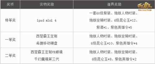 关山万里不可越,谁能坐对芳菲月!2月17日下午16:00,《西楚霸王》新春新服“关山万里”震撼开启!崭新的国战体验,豪华的开服礼包,定能令你力克群雄,在西楚的战场上一马争先! 七重好礼助国战 新服“关山万里”持续送出多重好礼,玩家登录游戏后,将能够享受到豪华七重礼!超级聚宝盆、天下第一战力赛等七大福利活动会给玩家带来大量高品质的游戏道具、专属称号、拉风时装等,助力玩家早日称霸新服! 高峰斗运气抽奖 高峰点斗运气抽奖也将进驻新服,玩家只需在开服前三天的晚上8点或10点参加抽奖,就有机会赢得iPad mini 4、西楚霸王定制希捷移动硬盘、西楚霸王定制VR眼镜等实物大奖和豪华道具礼包。 功勋抢夺勇争先 新服开荒,功勋争夺战自然是重中之重。 《西楚霸王》官方此次推出了五大征战项目,所有玩家都可以在各大项目中大杀四方,赢取真金白银的功勋和奖励! 热血迎头上,携君闯关山。就在今日下午16:00,新服“关山万里”全新起航!春节红包开启了一年好兆头,西楚大礼包也助力各位将士新年腾飞!马上进驻新服,制霸你的西楚世界! 关于西楚霸王 网易全新战争网游《西楚霸王》新服“关山万里”在2月17日16:00火爆开启,所有玩家都有机会加入秦末乱世,与兄弟一起白手打天下,成为国家的主人,成就最男人的创业!在全面革新的玩法中,玩家将能获得最立体、最真实的战争体验,既能通过蚁附攻城、万人冲阵,进入战争中的忘我激情;也能亲历十八派政权合纵连横的宏大叙事,玩转战场背后的权谋心计;还能成为一名独行佣兵,用万里江山换酒钱。 了解更多相关信息,请前往http://news.yzz.cn/ku/xcbw/ |