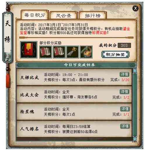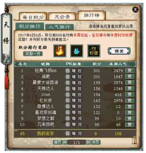 全PK玩法积分制,全民福利零门槛!《大话西游2经典版》2017全民PK季即将火热打响,3月2日至3月31日,参与PK季相关玩法均可获得积分,更有海量福利投放,个性化永久称谓、宝石、仙器、召唤兽高级技能以及珍稀年兽手办、鎏金宝鉴、2017玩家嘉年华入场券等你拿! 全PK玩法积分制 单服前500名奖励丰厚 大话2经典版2017全民PK季即将火热打响,3月2日至3月31日,诸位玩家参与天梯比武、水陆大会、比武大会、种族PK、抢星魂、帮战、长安之围等玩法,均可获得天榜积分,根据积分生成天榜排行榜,3月31日活动结束后,单服前500名可获得个性化永久称谓和丰厚游戏奖励,更有珍稀年兽手办、鎏金宝鉴、2017玩家嘉年华入场券等你拿! 全民福利零门槛 海量奖励大放送 活动期间,诸位玩家可使用25点天榜积分参与随机抽奖,有几率获得2017玩家嘉年华入场券、2016鎏金宝鉴、珍稀年手办、仙器、宝石、召唤兽高级技能等丰厚奖励!4月1日后,单服排名前500的玩家可点击全民PK季天榜排行榜界面的“领奖”按钮,领取个性化永久称谓、海量经验、宝石精华以及鸡驴手偶等丰厚奖励! 此外,诸位玩家可在排行榜中,点击“赞”按钮支持除自己以外的积分榜玩家,每周单服被赞次数前50的玩家(每周四结算),可以获得额外抽奖机会,有几率获得宝石、仙器等奖励! 了解更多相关信息,请前往http://dh2.yzz.cn/ |