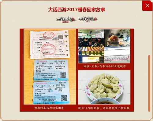 情义归家路,温情暖心间!《大话西游2》2017暖春回家活动已圆满结束,本次活动中,来自天南地北的玩家纷纷分享了自己的返乡故事,其中有玩家由西到东穿越中国,全程历经4000多公里;有玩家因车票难抢,需转车5趟,耗时38小时之久才回到家乡;有玩家当兵10年,今年是他第二次回家……回家的旅途,陪你一起走过,回家的故事,与你一起分享! 从拉萨到济南 为爱穿越中国 今年春节,来自服务器【白雪青松】的“爱你不变灬”和女朋友一起经历了一趟漫长的回家之旅,先从拉萨出发全程硬座到北京,再由北京乘坐高铁去济南,再由济南乘坐大巴车回家,全程乘坐了三种交通工具,走了4000多公里的路程。在这段旅程的背后,是一段历经辛苦才被父母认同的恋情。 从海口到济南 服役10年盼团圆 来自服务器【星河云海】的“单纯deベ堂堂”是一名服役10年的老海兵,当兵10年了只在家过了一次年。今年,成功提了休假的他,终于可以回家跟父母、亲人一起过个团圆年,一起吃上全家团聚的年夜饭! 从宁波到成县 转车最多的回家路 来自服务器【如意仙居】的“Force.醉酒”从12月20日就开始抢火车票,天天十点半准时守在电脑旁边,却一直都没有抢到直达车票,无奈之下只能选择了一条一波五转的路线:从宁波到杭州,杭州到西安,西安到天水,天水再到家乡成县,全程回家总共38小时之久。归家途中,他幸运地订到一张从西安到成县的直达票,在深夜回到了家,吃上了母亲亲手包的热腾腾的饺子。 了解更多相关信息,请前往http://xy2.yzz.cn/ |