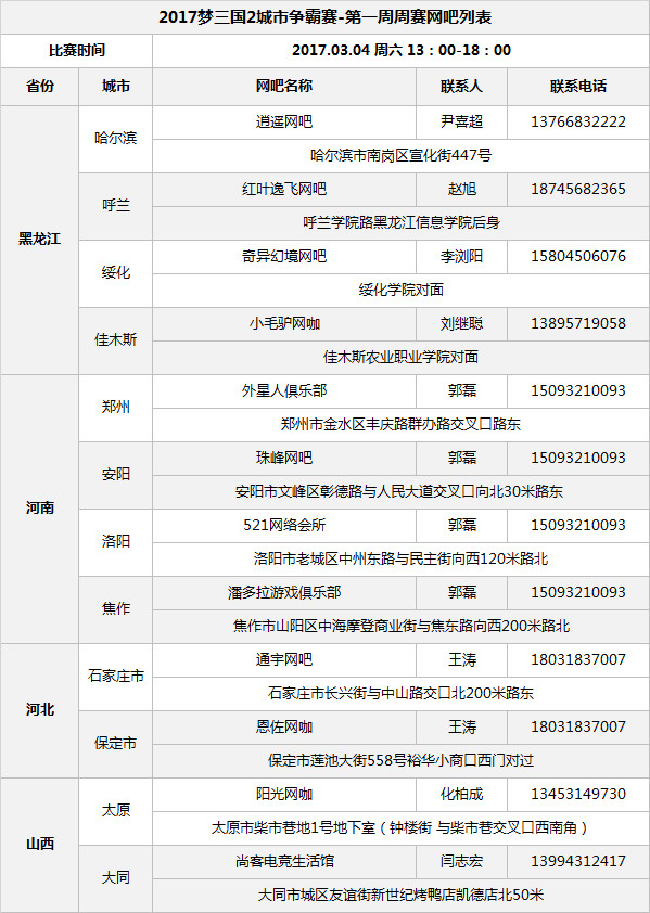 2017《梦三国2》城市争霸赛第一季已经正式启动,首周报名便得到了各地玩家踊跃支持,而本周六第一周的周赛即将开打—— 第一周周赛报名已于昨日截止,后续报名的小伙伴们仍然可继续参加第二周及后面的周赛。第一周各个城市赛点网吧如下: 比赛将在每个赛点城市举办持续四周的周赛,周赛中未获得冠军名次的战队可以继续参与到下一周的周赛当中。获得周赛冠军的队伍晋级至省决赛,省决赛获胜队伍再度晋级至季决赛之中,季决赛冠军除了获得丰厚的奖金之外,更可以获得2017梦三国2-MSPL次级联赛夏季赛的晋级名额,在MSPL中取得好成绩的队伍则可以进入至梦三国2职业联赛MPL当中哦,让你也成为职业大神中的一员! 《梦三国2》城市争霸赛不同于职业的《梦三国2》-MPL、MSPL职业联赛。更加注重于全民参与,让每一个玩家都有机会参与到我们梦三国2的电竞赛事平台里,享受电子竞技所带来的激情。我们也为每一位支持本次赛事的到场玩家准备了参与奖励,无论你是到场参与比赛,或者到场围观,都将获得这份礼品,另外获得周冠亚军奖励的战队每个队伍成员都将获得硕美科便携-耳机伦敦L1或梦三国周边-战鼓腰枕。 关于梦三国2城市争霸赛 《梦三国2》城市争霸赛是2017梦三线下赛事之一,第一季将于河南、黑龙江、山西、河北四省线下城市赛点展开。区别于职业联赛MPL,该赛事主打全民参与,让更多玩家体验到梦三电子竞技的乐趣,同时还将开放梦三次级职业联赛MSPL的晋级通道,让草根玩家同样有机会站上职业的舞台。 了解更多相关信息,请前往http://news.yzz.cn/ku/msg2/ |