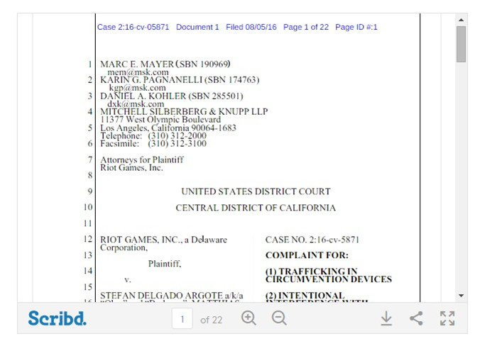 拳头状告LOL外挂网站胜诉:对方被判赔千万美元
