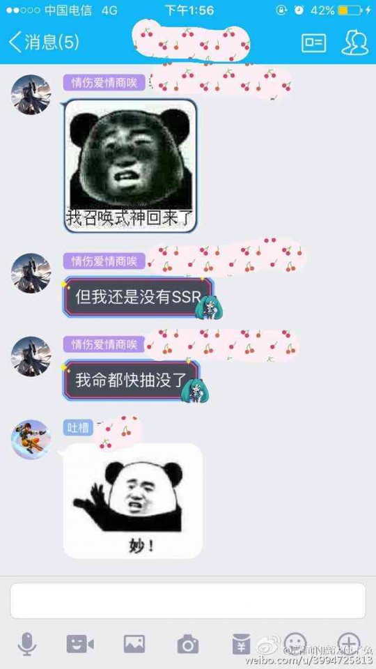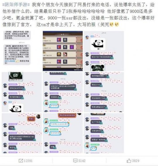 网易旗下手游《阴阳师》一经推出就迅速蹿红,拥有了庞大的玩家群体。不过在这块“非欧交界”的大低上,被大家吐槽最多的可能就是抽到SSR式神的爆率...在游戏中抱怨“老子TM都40级了还是没SSR”的也不在少数。有不少氪金大佬投入了成千上万,还是抽不到哪怕一张SSR。 近日有位名为“@普通的魔法使子兔”的网友爆料了一个他非酋朋友怒氪9000不出SSR惊动官方的故事... 以下是微博原文: 我有个朋友今天接到了网易打来的电话。说他爆率太低了,给他补偿什么的。结果最后只补了5张券哈哈哈哈哈哈 他好像氪了9000还是多少吧,氪金就算了吧,9000一张ssr都没出,没错是一张都没出,这个爆率好像惊到了官方。 这tm才是非上天了。大写的服(笑死 虽说在游戏中我们已经见过无数非酋的眼泪,但这位小哥真是黑得惊天动地,连网易爸爸都看不下去亲自关爱了他一波...不得不感叹“物极必反”、“否极泰来”,古人诚不欺我也! |