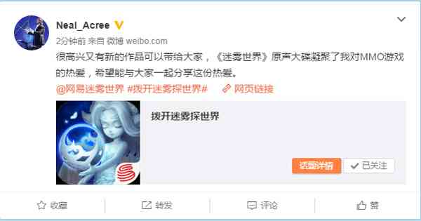 网易策略探索MMO手游《迷雾世界》日前发布“四大热爱者联盟”战略活动,首期亮相的“开荒热爱者”NGA以专业的视角评测向玩家推荐了游戏,让玩家影响深刻。而在今天,网易云音乐携手知名游戏音乐人Neal Acree,以热爱之名为“BGM热爱者”站台助威! 【暴雪音乐大师最新力作】 有着“暴雪御用音乐人”之称的著名游戏音乐作家Neal Acree,此前参与到了《迷雾世界》的游戏音乐创作中来。作为首席游戏音乐制作人,Neal 组织了包含美德等国知名音乐家在内的国际团队为游戏量身创作了14首风格各异的原声音乐,将游戏不同的场景、氛围以及战斗等内容通过音乐进行包装,引领玩家进入一个更真实的游戏世界之中。 作为“BGM热爱者”的代表之一,Neal通过专访视频向中国玩家表达了问候,并且针对游戏音乐创作相关的内容以及玩家所关心的问题向大家作了介绍和解答。一直以来,凭借着为包括《魔兽世界》《守望先锋》在内的经典游戏创作音乐,Neal的作品受到了越来越多人的关注。在经过了一段时间的等待后,Neal本次为大家带来全新的作品,并且是首次与中国手游进行合作,全新作品令人期待。 【云音乐独家首发力捧新作】 前面提到了Neal及其引领的国际团队为《迷雾世界》创作了14首原声音乐,备受玩家好评。今天,游戏内的全部14首原声音乐经由网易云音乐独家对外发布,除了在游戏里听,玩家从今天起还可以通过网易云音乐享受大师带来的音乐盛宴。作为音乐市场新兴生力军,凭借着极具特色的音乐分享、乐评以及一流的视听体验感受,网易云音乐越来越受到音乐热爱者们的青睐。 本次合作,网易云音乐独家首发了游戏全部原声音乐,将游戏内的BGM对外进行展示传播,并通过微博等途径向用户推荐游戏音乐。作为音乐平台,网易云音乐本身也就是“BGM热爱者”的代表之一,网易云音乐和Neal联手为更多的“BGM热爱者”们站台,以热爱者的名义向玩家传递热爱宣言,相信将吸引到更多的音乐热爱者们关注游戏音乐,以及游戏本身。 随着“BGM热爱者”宣言的揭晓,四大热爱者联盟还剩下两个悬念。探险和剧情将带给我们怎么样的惊喜?让我们共同期待! 关于《迷雾世界》: 《迷雾世界》是一款策略探索MMO手游,秉承着网易精益求精的研发理念,由中美德韩国际顶级团队合作监制。架空西方魔幻题材,人类、精灵、兽人、矮人等9大种族对抗、共生,构建庞大世界观。玩家可以在不同风格的超大地图上展开自由探险,剧情、英雄、怪物、BOSS等内容丰富新奇,前途永远充满未知。《迷雾世界》支持单人冒险和MMO多人策略合作,推崇玩家交互协作,不提倡恶意攀比竞争,回归游戏最本真的乐趣;支持组队实时语音,媲美面对面交流,解放双手,升华组队体验。 了解更多相关信息,请前往http://sy.yzz.cn/ku/mwsj/ |